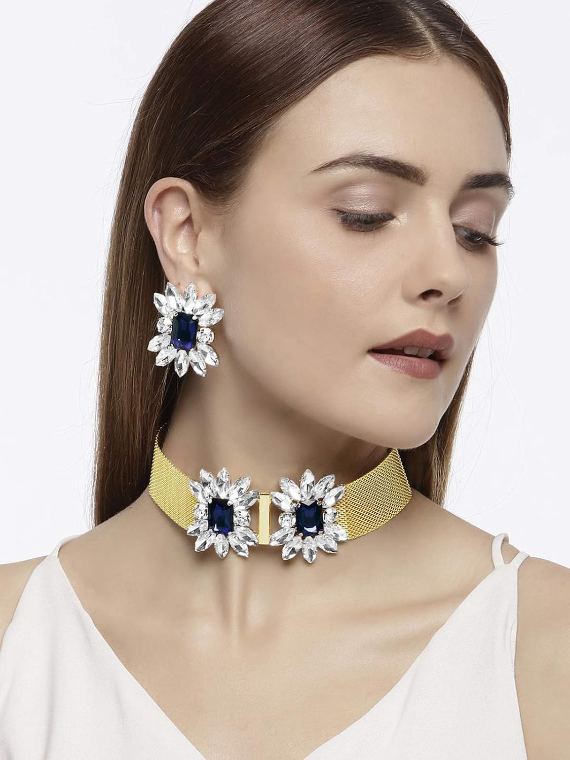 Rank high on the fashion meter by donning this crystal look choker necklace set from zaveri pearls. this jewellery is just what you need to complete your outfit with elegance. club it with western dress to flaunt your gorgeous look in no time.