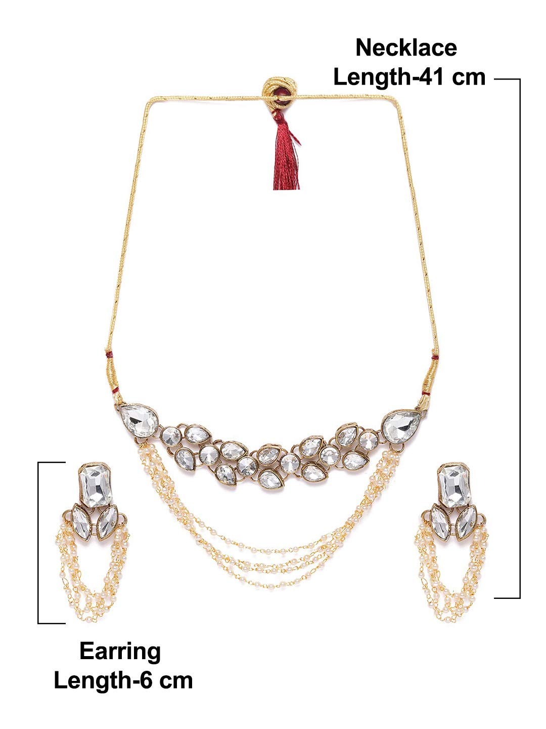 ZAVERI PEARLS Gold Tone Stones & Pearls Necklace Earring & Finger Ring Set For Women-ZPFK9997