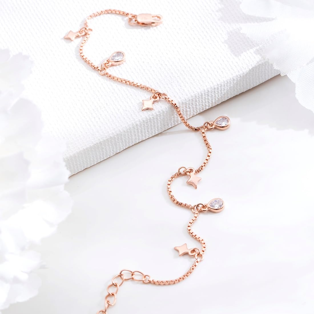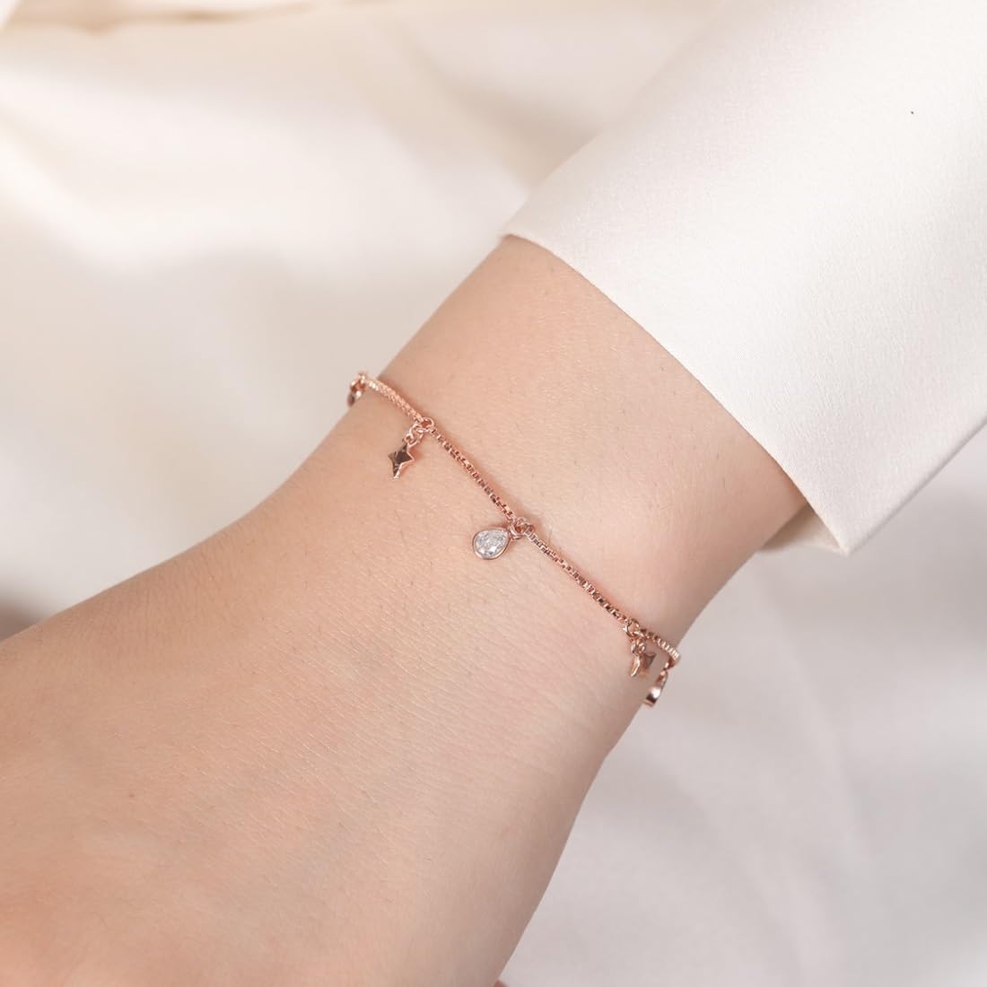 Wrap your wrists in the rosy embrace of style with our Rose Gold-Plated Sterling Silver Bracelets! Click to dance through a garden of elegance, where each link tells a whimsical tale. Celebrate your wrist game with the perfect blend of charm and sophistication. Who says glamour can’t be as playful as it is radiant?