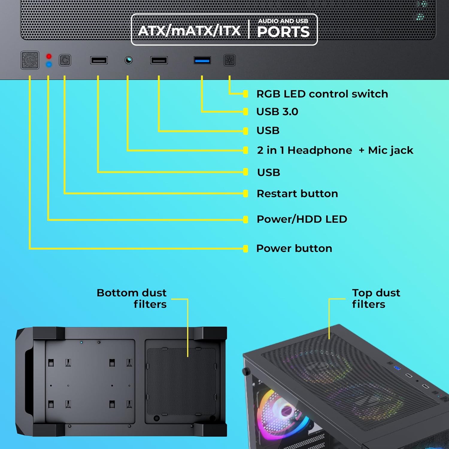 Go for the ZEB-Aurora, a largely spaced premium gaming chassis that will take your gaming experience to the next level with its stylish outlook, to make your gaming space ultra-cool. It is designed with tempered glass on the left-side panel and a front fine porous metal mesh that slightly projects out of the plane surface to conceal the chassis.