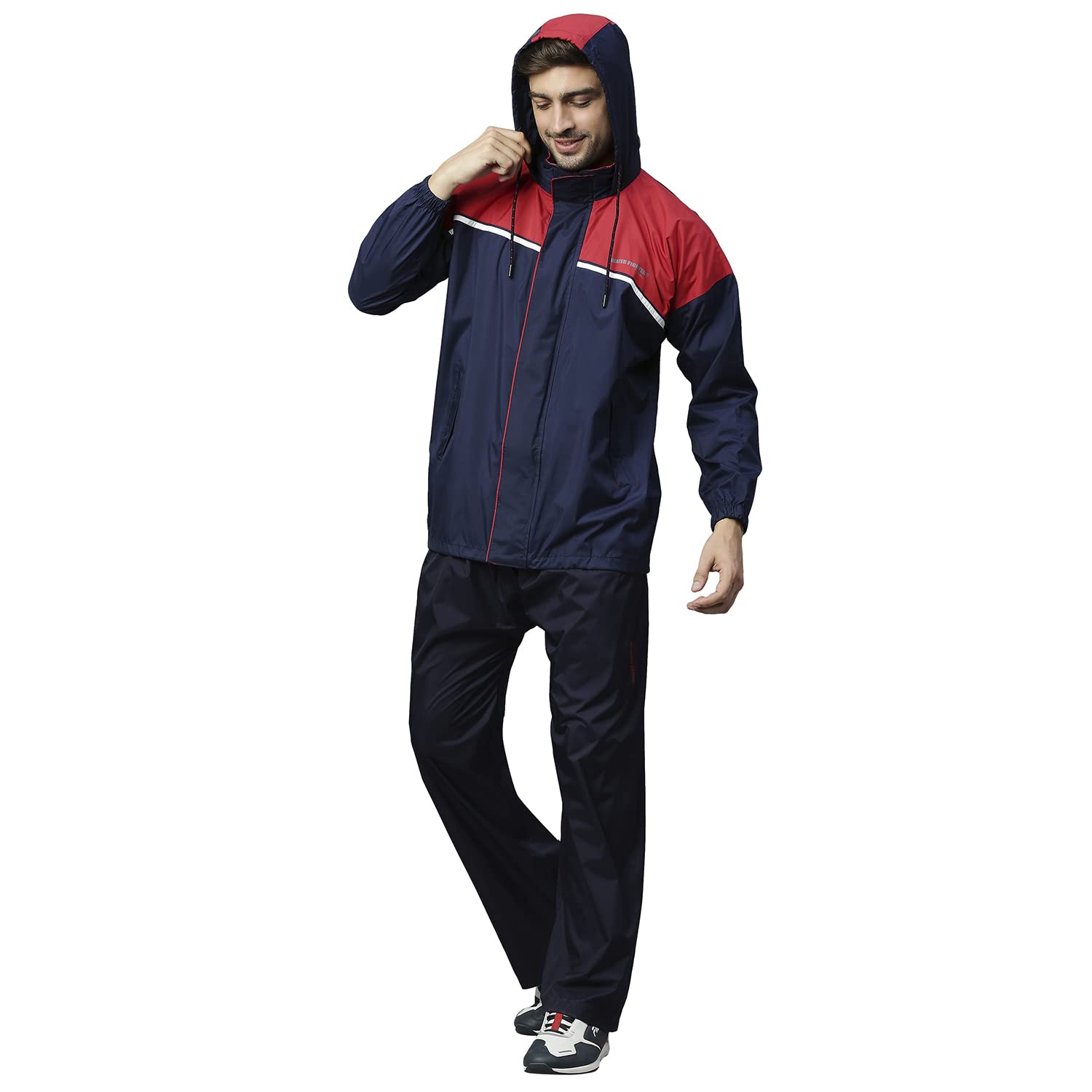HIGH NECK WITH CUFF PROTECTION: The Waterproof Jackets comes with Drawstring at the hood with a cord lock stopper and a high neck design along with a velcro band at the wrist cuffs to ensure water does not seep through.