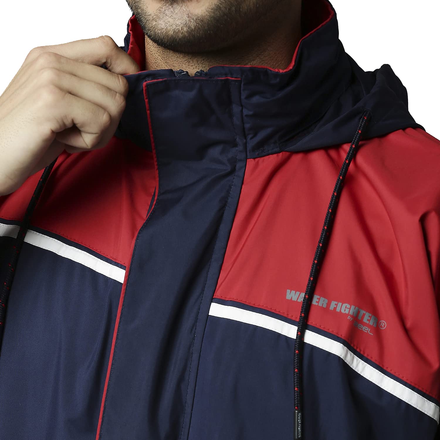 A ZEEL raincoat has an outer flap and a fastening zip closure, keeping strong winds and rain at bay. Full zip closure with an outer flap prevents water leakage and helps to block the rain.