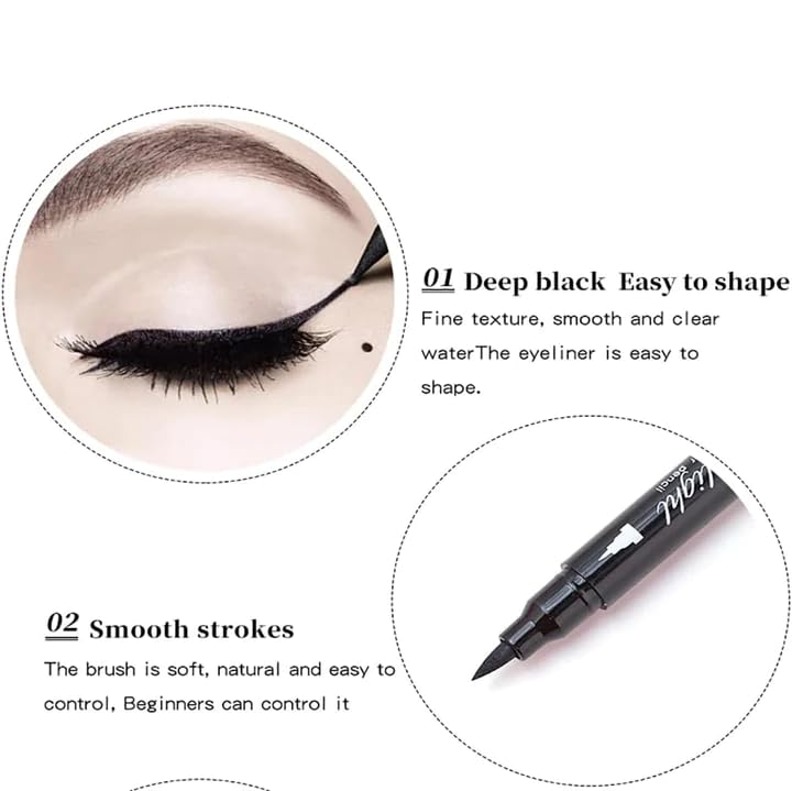 2 in 1: Eyeliner with stamp 2 in 1 design,easily create a perfect eye makeup,drawing eyeliner simply and save time.