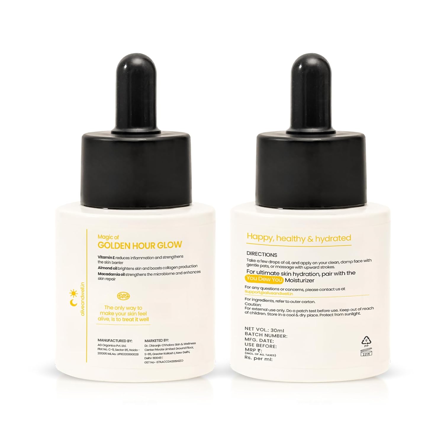 Get That Golden Hour Glow: Warm the oil between your fingertips, let the texture glide on your face and witness the tension to melt away. The oil feels like an elixir, soothing your skin, making it feel plump, hydrated, and incredibly soft.