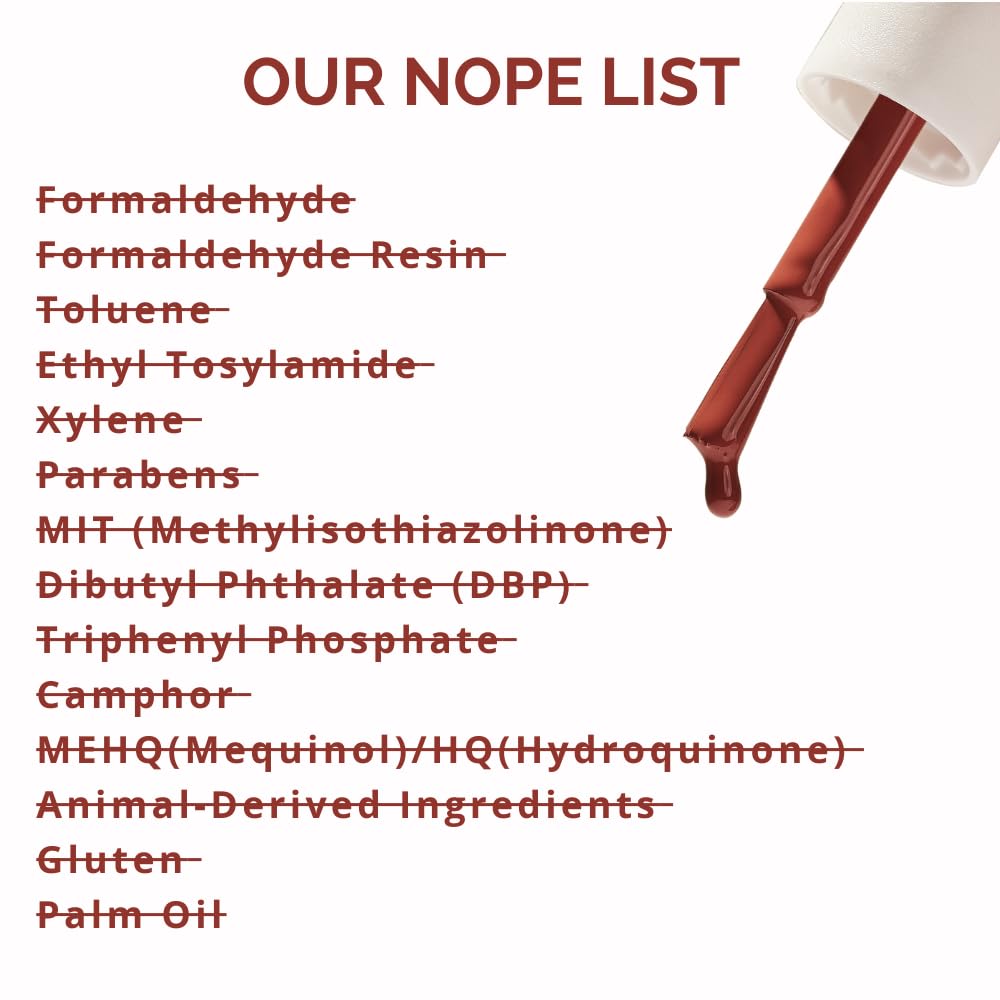No Toxins, Vegan & Cruelty Free – A Nail Polish Range that stays away from toxins and harmful chemical. Our stunning collection of nail polish shades are completely Vegan & Cruelty Free.