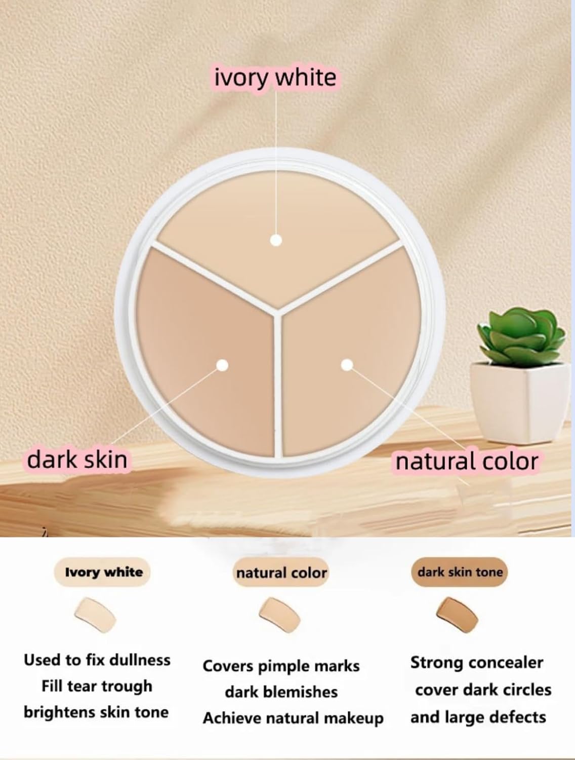 Tri-color Cream Concealer Contour Palette, Full Coverage, Waterproof Long-Lasting, No Smudge, 3D Contour Cream Makeup Palette, Travel Size Makeup Palette