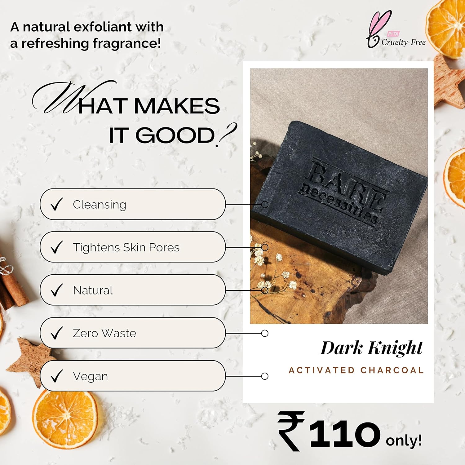 ACTIVATED CHARCOAL SELF CARE: This Bare Necessities Gift Bundle has an Activated Charcoal Toothpowder for teeth whitening and an Activated Charcoal Soap for men which acts as the ultimate detan soap for tan removal.