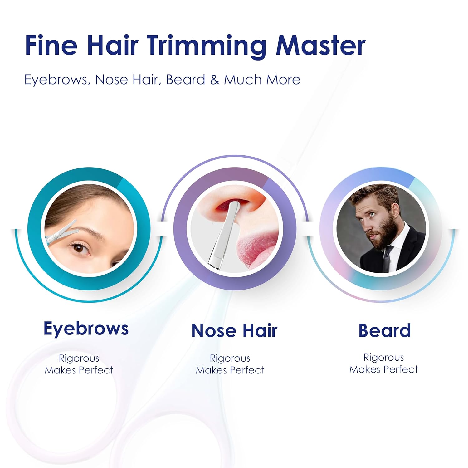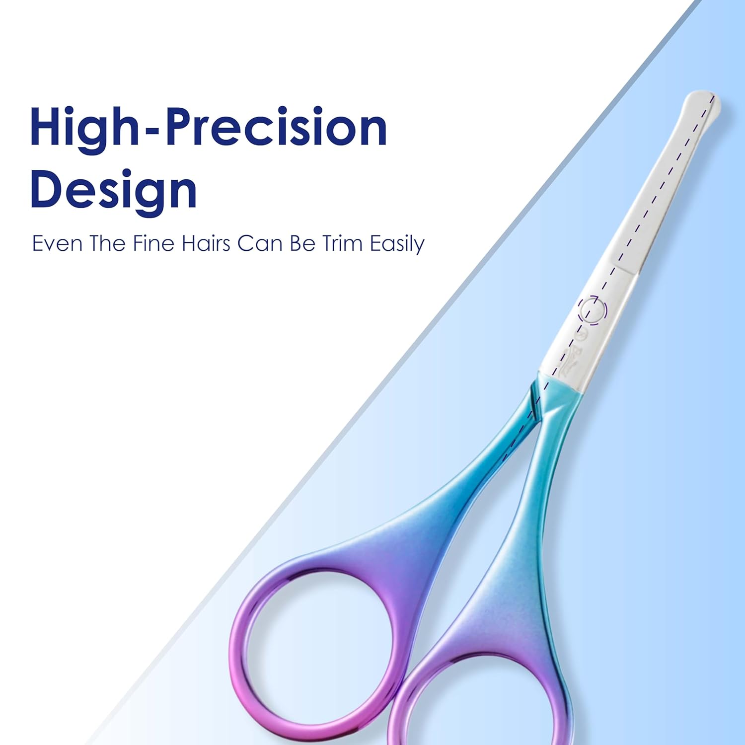 Cute and novel design: eyebrows scissor with round tip design, safer protection especially for facial, nose hair grooming; Cutting edges with rounded and curved tips offer accuracy and can help trim small parts