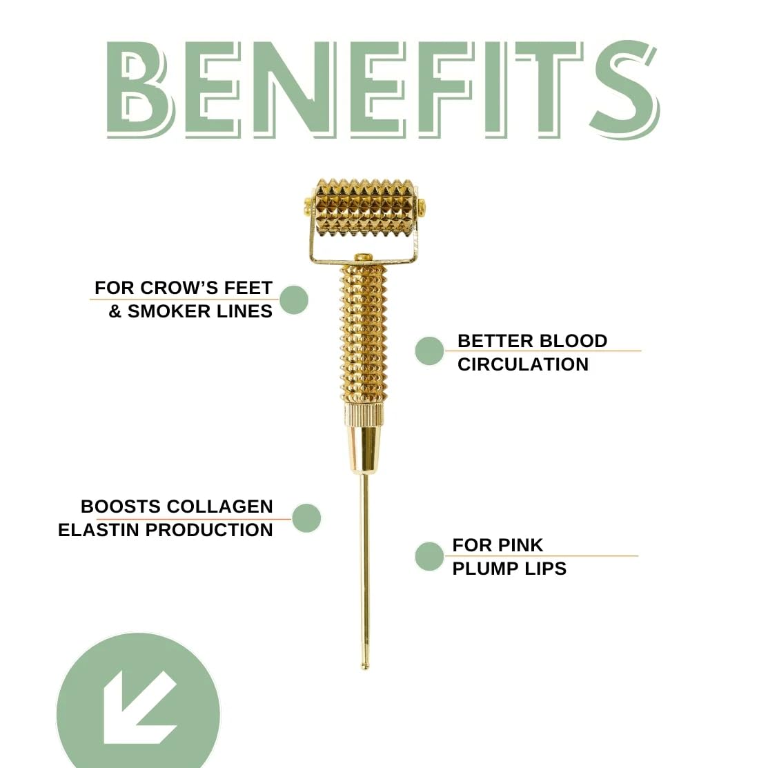 Gold Collagen Roller is your very own wrinkle busting “magic wand” that boosts collagen production, stimulates muscles and improves blood flow. Just a couple of minutes every day will boost your skin’s collagen production, improve circulation and increase product absorption, helping to reduce the appearance of fine lines and wrinkles and leaving your skin feeling firm and glowing.