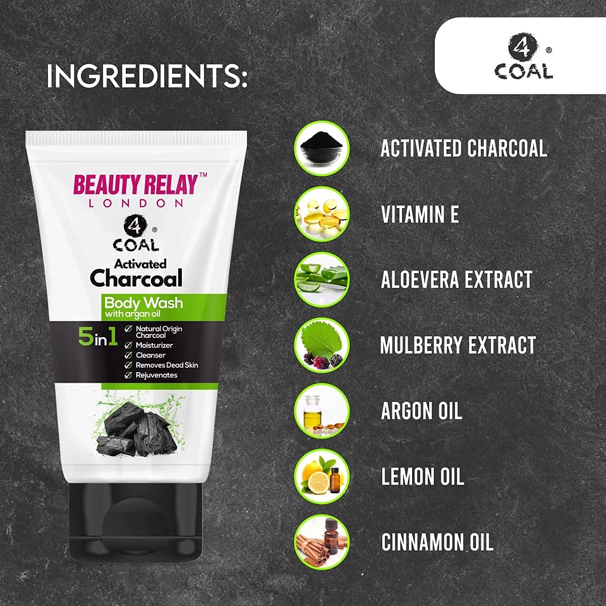 Beauty Relay 4Coal Activated Charcoal Body Wash, for all skin types, (200 ML)