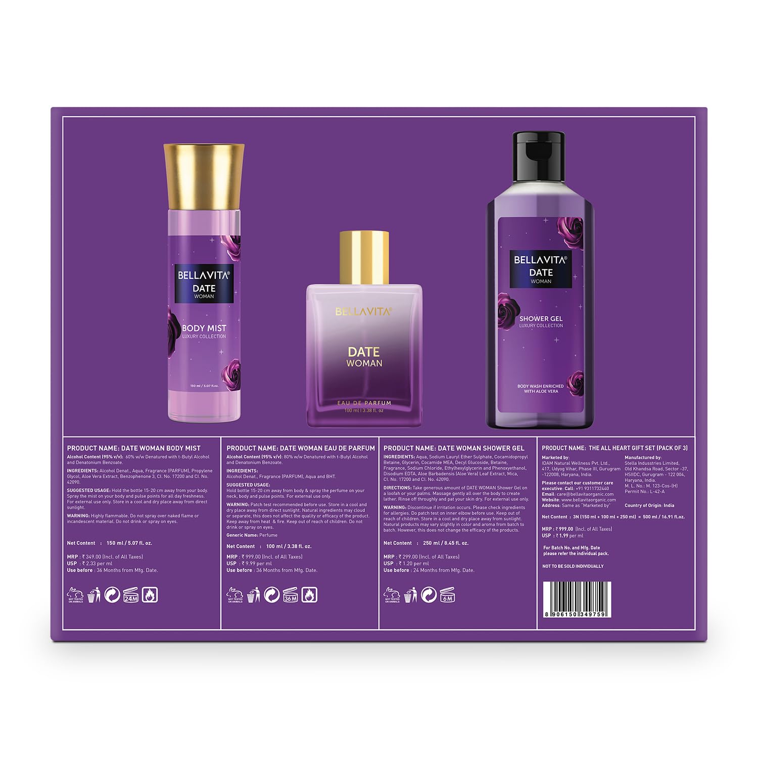 A. The ‘All Heart’ Gift Set contains 3 items – DATE Woman Shower Gel, DATE Woman Body Mist, and DATE Woman Perfume.