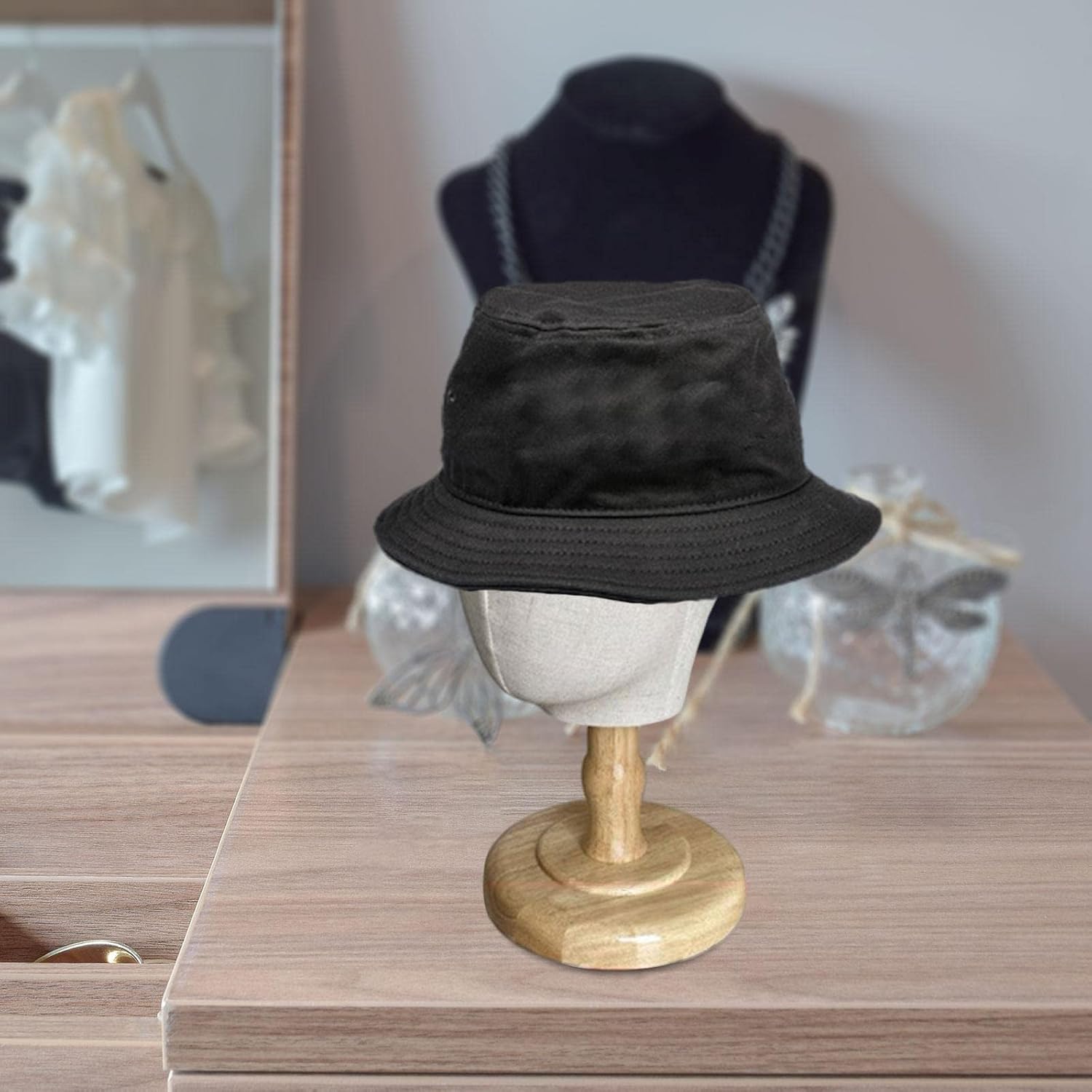 Durable Material‘: The mannequin head is made of Durable quality cloth material, with a wooden base, stable and durable to use.