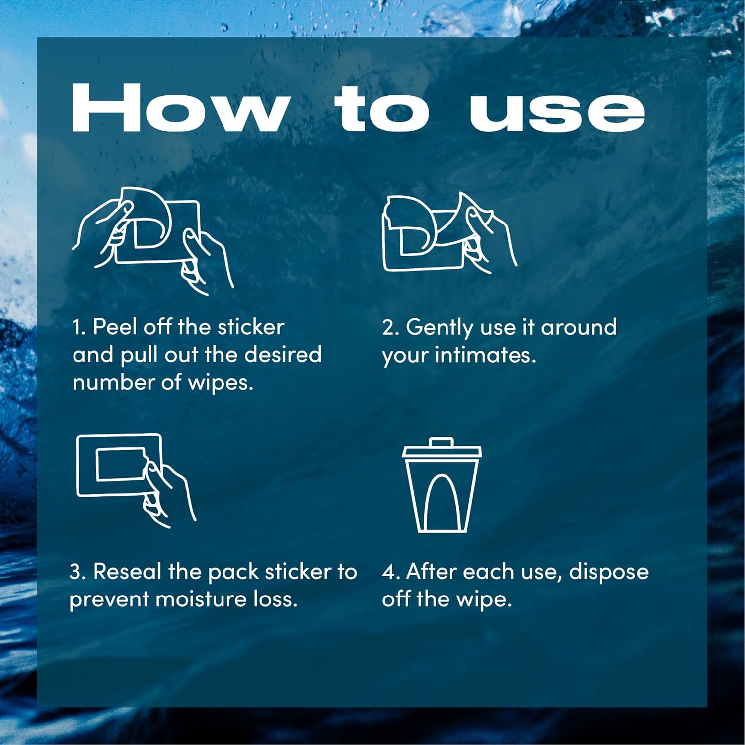 HOW TO USE: Unpeel and remove a single wipe from the packet. Unfold and gently wipe around intimate areas. Wipe from front to back once. Dispose of after one use. Do not flush. Reseal pack sticker to prevent moisture loss.