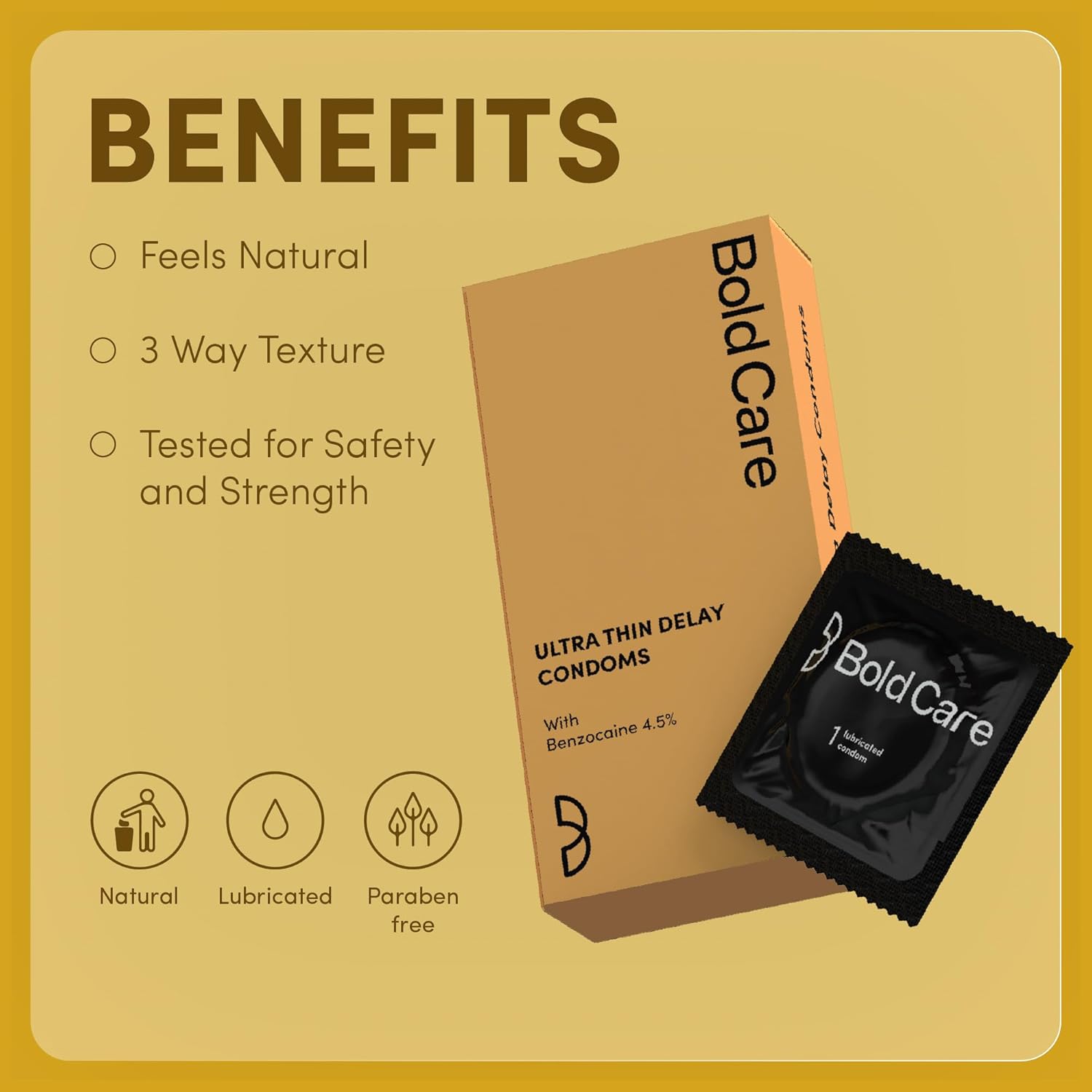ULTRA-THIN FOR INTENSE PLEASURE: Enhance mutual moments of passion with Bold Care Ultra Thin Condoms. Its premium extra-thin latex assures intense pleasure without compromising on safety.