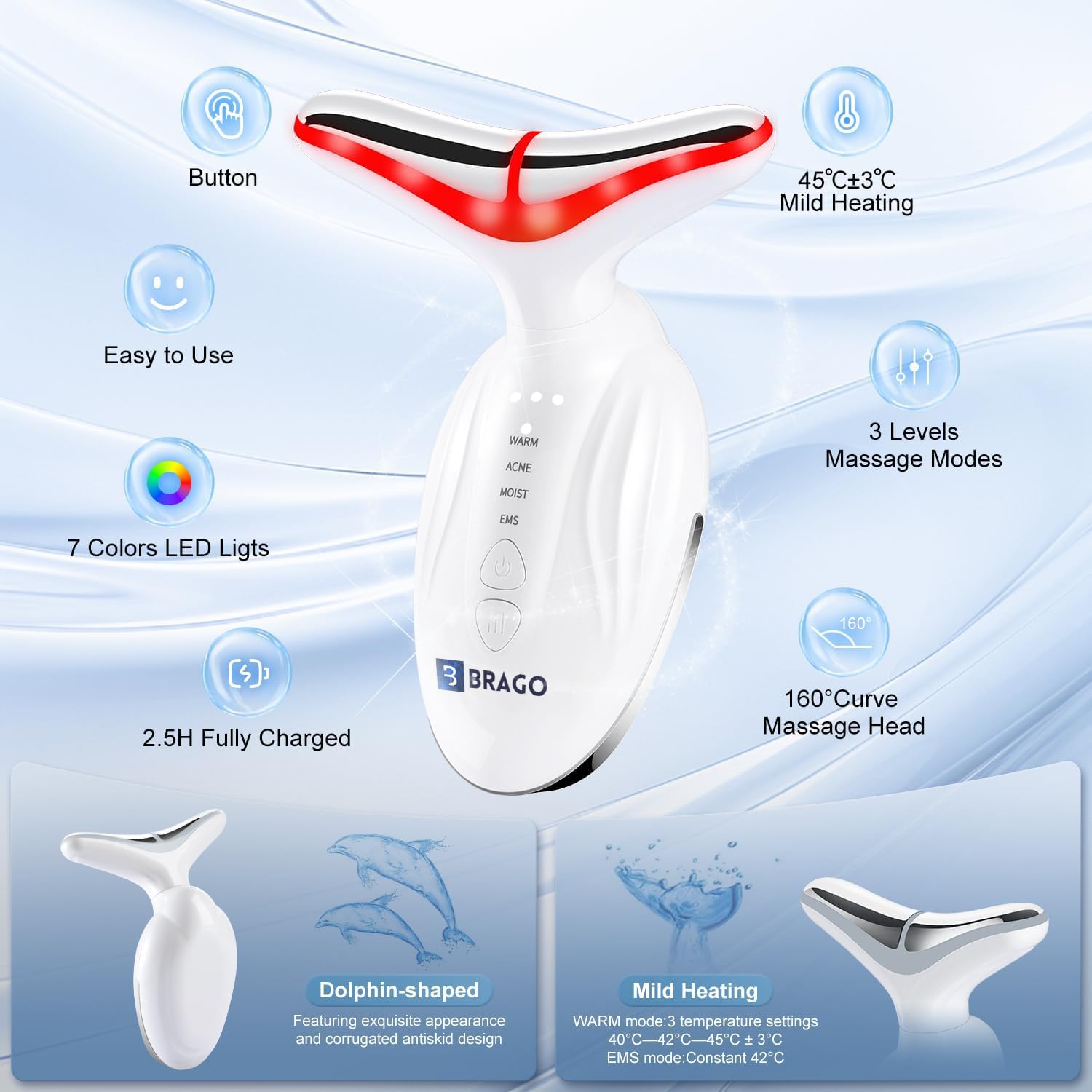 BRAGO 7-in-1 LED BEAUTY DEVICE FOR THE FACE and NECK
