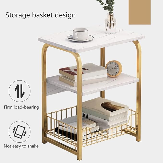 ✔3 TIERS WITH STORAGE SHELF: The Size is 15.7 x 11.8 x 22.1 inches. 3-Tier end table for additional storage meet all of your different needs. And the bottom wide U-shape steel wire basket for easy access and storage snacks,cans or other stuff.
