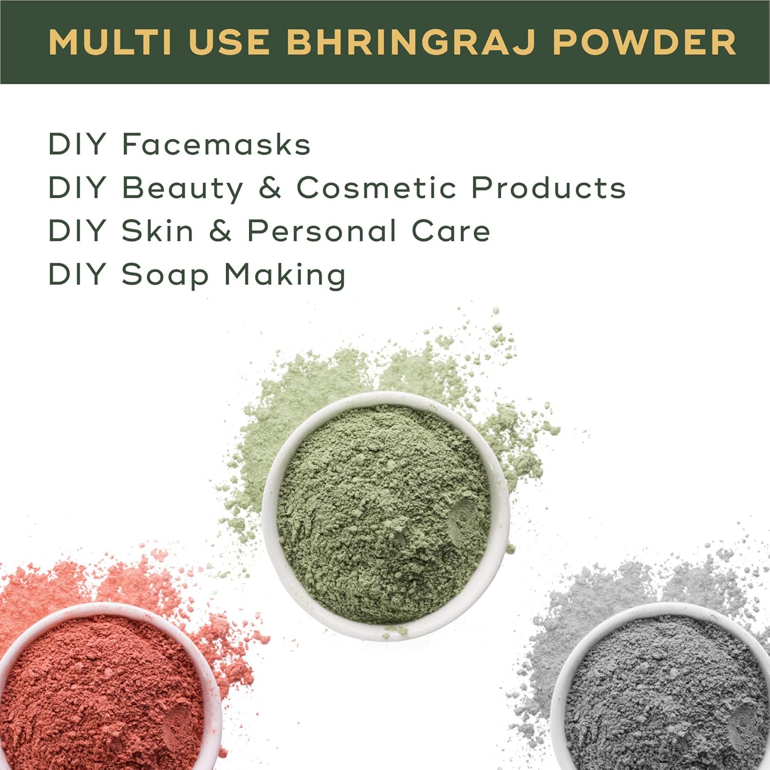 MULTI USE: Cosmetic Grade Bhringraj Powder used as a raw material for your cosmetic brand or DIY use to make products such as facial mask, hair mask, face and body scrubs, lotions, creams, moisturizers, serums, hair and skin care products, pressed powders, liquid foundation, mascara, deodorant soap, shampoo making and many more beauty and make up products.