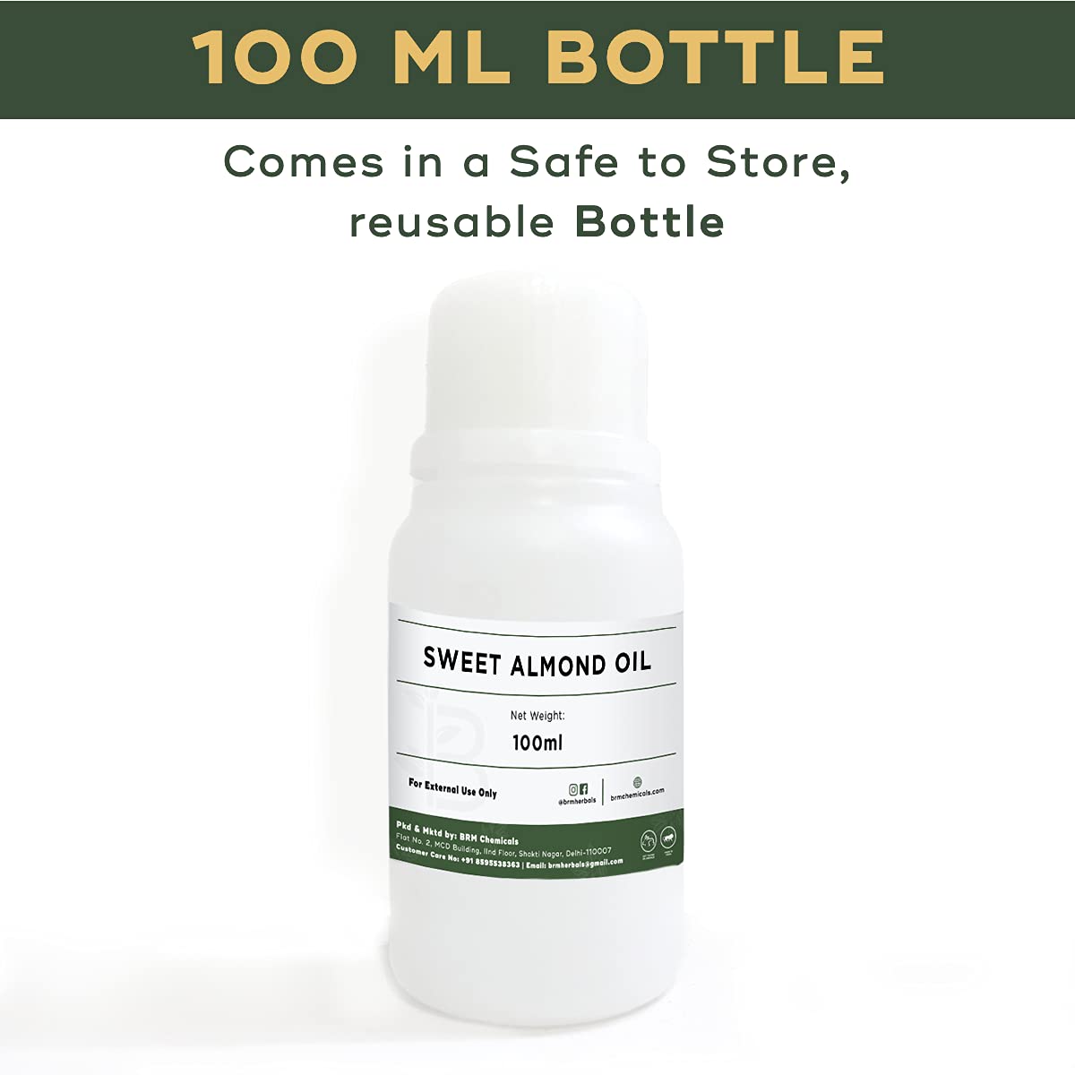 100 ML PACK: Comes in a sealed, reusable and easy to store bottle with 100 ML of Sweet Almond Oil.