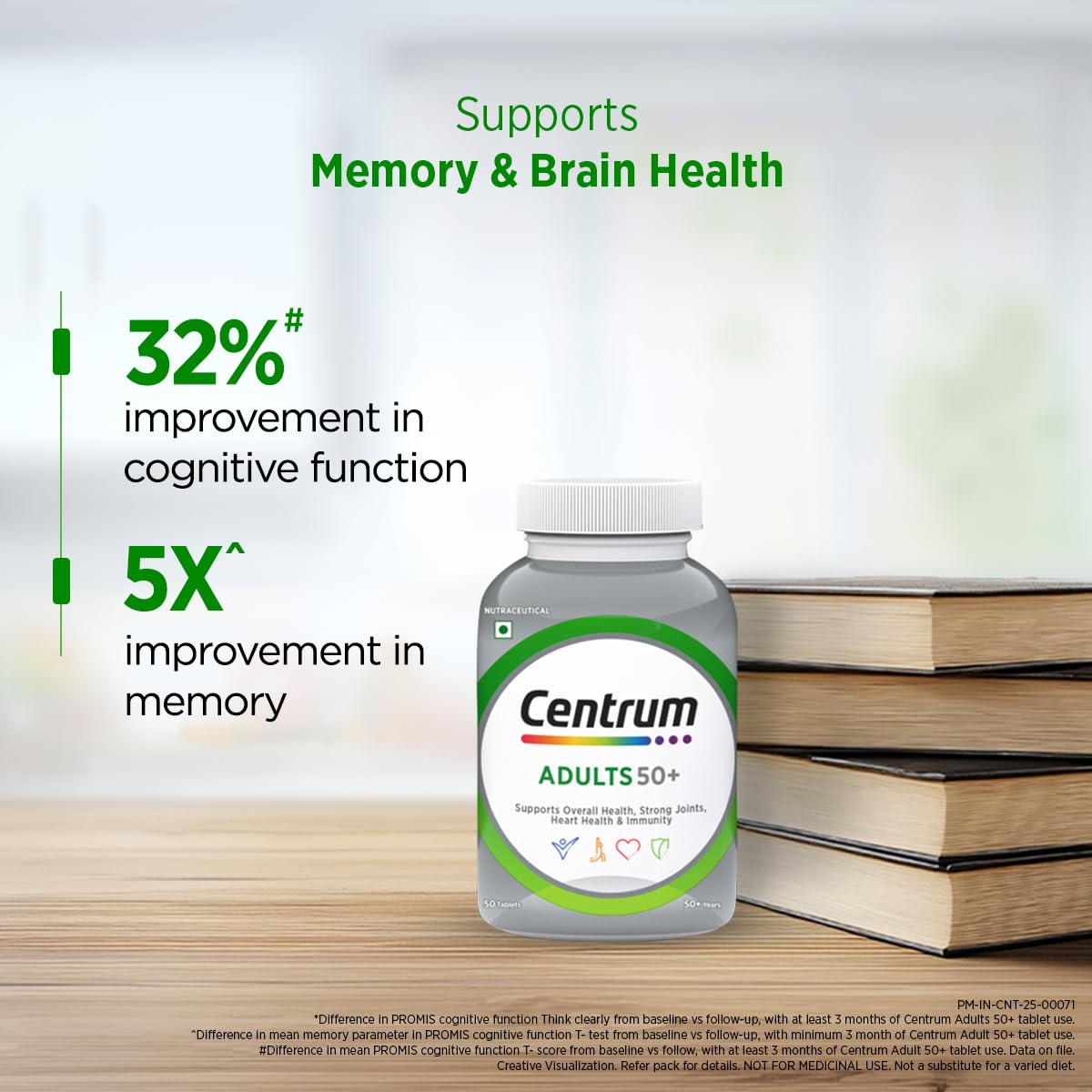 Multivitamin, Centrum presents Centrum Adult 50+ Multivitamin & Multimineral Supplement, now in India. One bottle with 30 tablets. Take one per day.