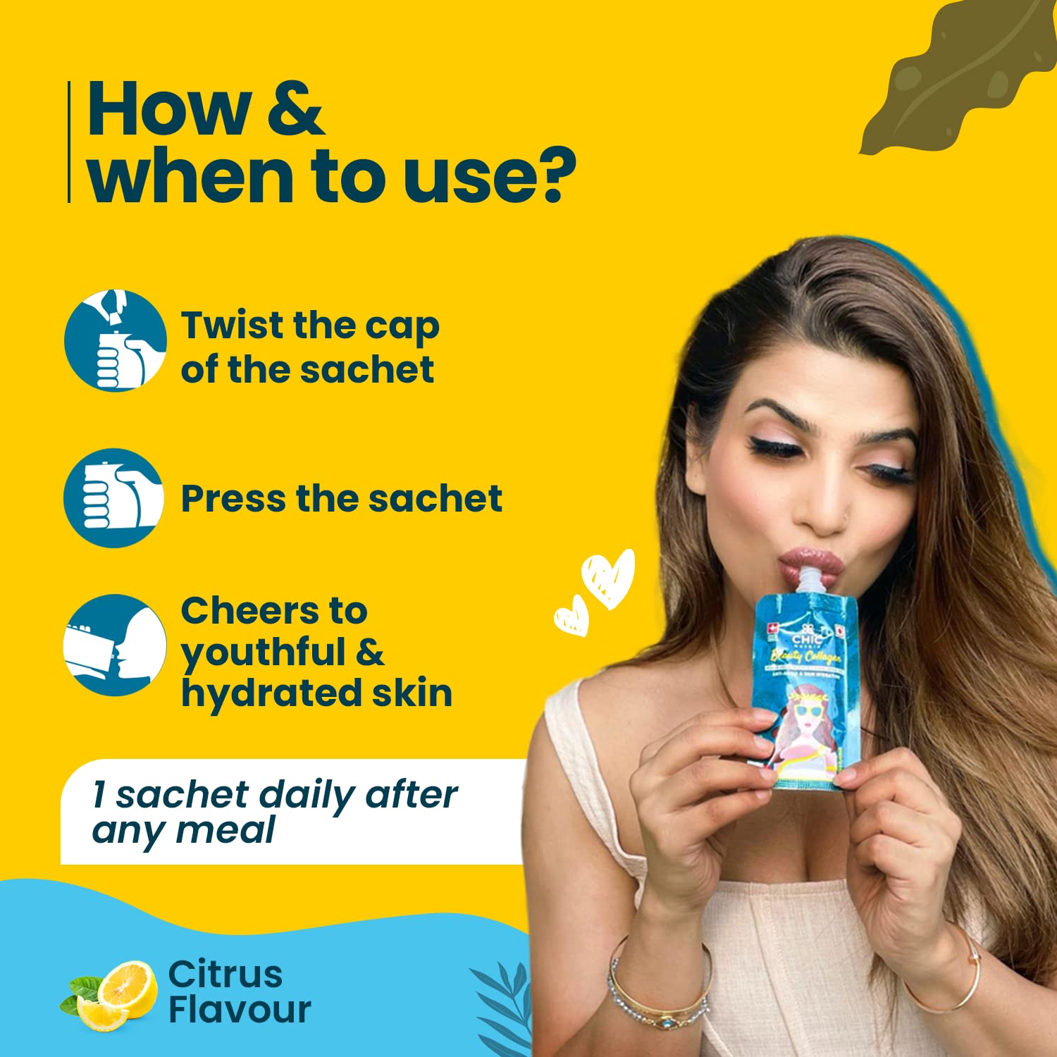 Recommended dosage: dermatologist approved, no added sugar, gentle on stomach. One shot, a day daily for flawless dewy skin.