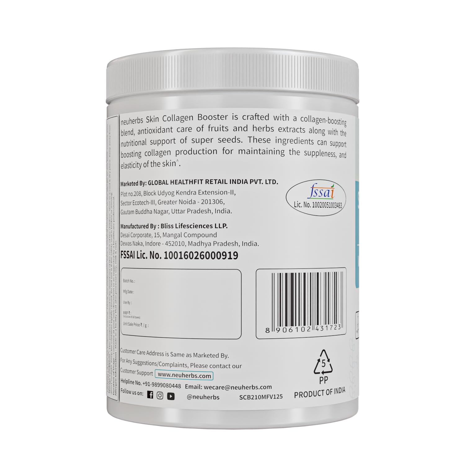 Generic Name : Neuherbs Plant-Based Skin collagen Booster with Hyaluronic acid, Vitamin-C, Ellagic Acid, Carotenoids, Silica & Super Seeds Blend for Anti-aging & Skin repair -210g (Natural Mixed fruit flavor)