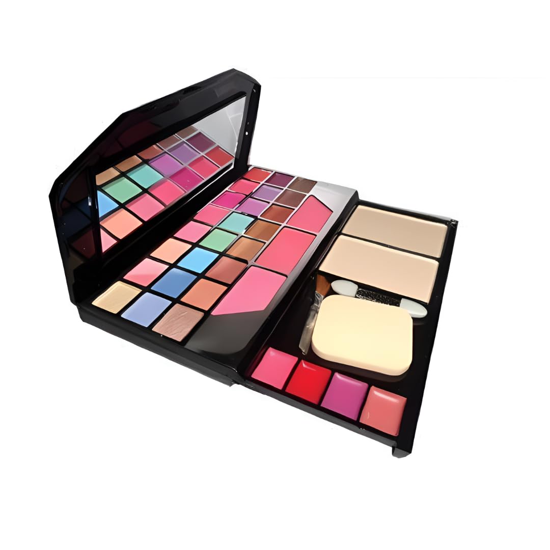 Package Contents : 1 Tya 6155 Makeup Kit (24 Eyeshadow, 3 Blusher, 2 Compact, 4 Lip Color), 7 Pink Makeup Brushes Set, 1 Hair Dryer, 1 Mini Hair Straightener, 3in1 Eye Combo, 36H Eyeliner, 1 Kajal and 1 Pink Beauty Blender