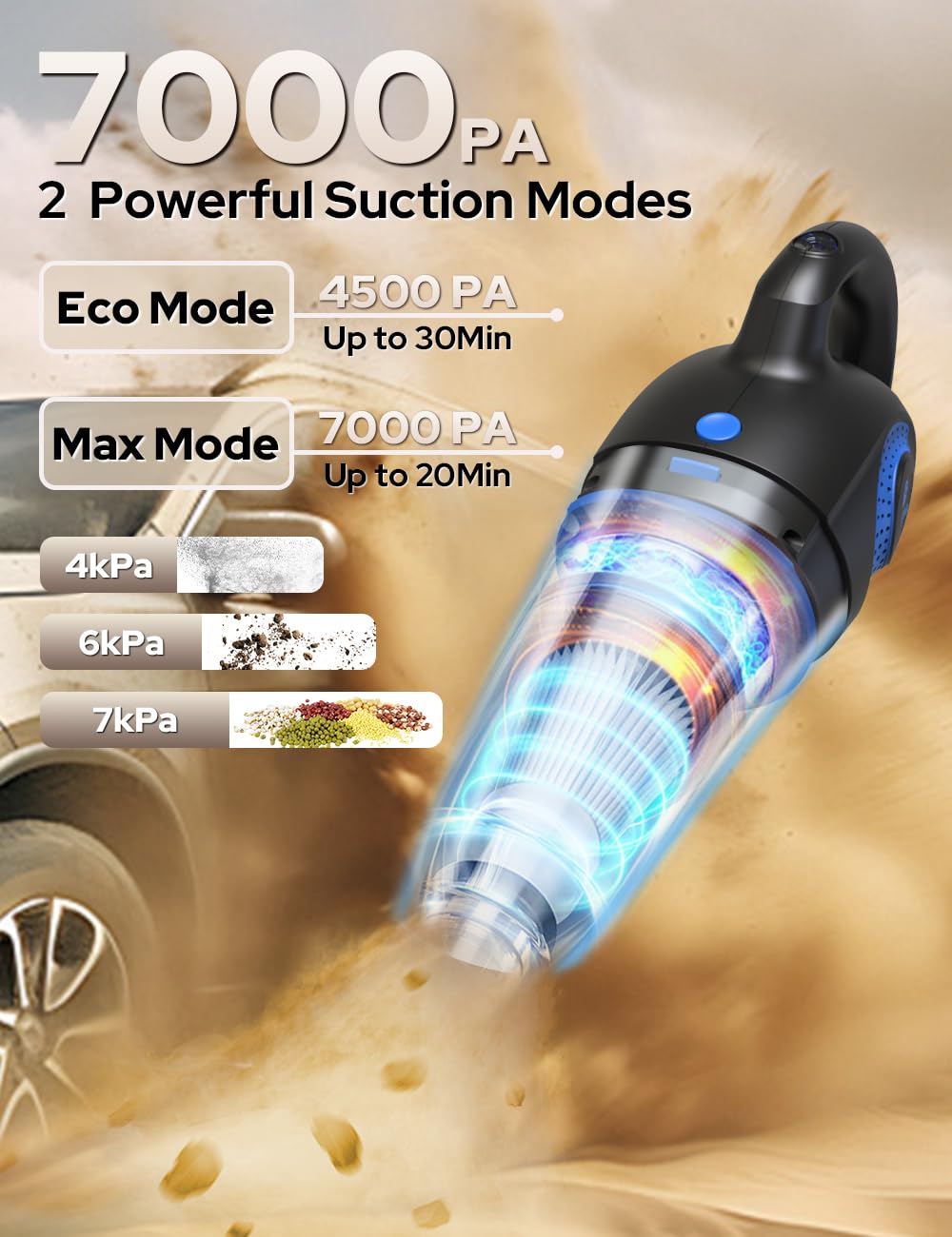 {Adjustable Suction for All Needs}:With two levels of suction power adjustable up to 7000Pa, our vacuum cleaner for home is designed to tackle everything from fine dust to larger debris. Whether you’re dealing with pet hair, spilled cereal, or stubborn dirt, this versatile cleaner is your dependable ally in maintaining a clean home environment.