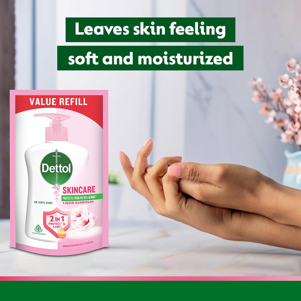 Be 100% sure to protect your skin from 100 illness-causing germs and bacteria. Use Dettol’s Skincare Germ Protection Handwash Liquid Soap pH balanced formula every day and keep your hands hygienically clean and refreshed. This hand wash provides soft and rich lather, leaving behind clean hands and fragrance. The trusted germ-protection modus operandi acts like a barrier between your hands and a wide range of unseen germs. The soap-free formula with glycerin makes sure to keep your skin moisturised, while the plant derived cleansers help ensure thorough cleaning. Dettol handwash also contains more than 85% naturally derived ingredients with no TCC & Triclosan, giving another healthy reason for hand washing whenever in need. Wash hands properly with Dettol and help keep your family healthy! Safety Information: Keep out of reach of children unless under adult supervision. Avoid direct contact with eyes. For external use. In case of contact with eyes, rinse immediately with plenty of water. If persistent irritation occurs, seek medical attention. Refillable : No
