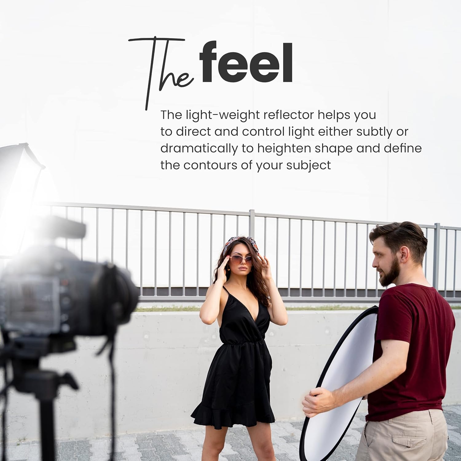 5-in-1 reflector is durable and flexible steel spring frame insures easy spreading and closing.