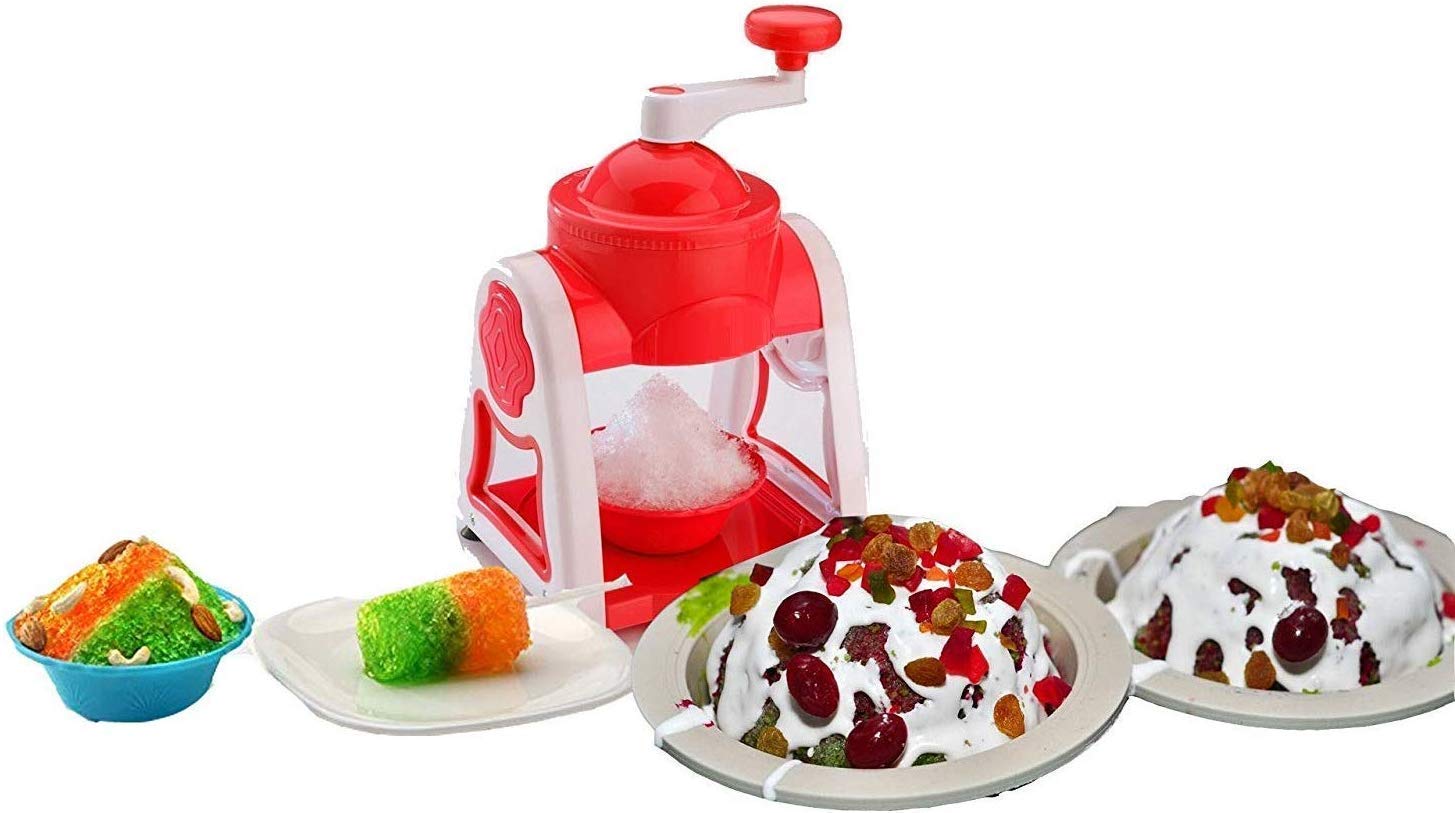 Ice gola maker machine manual slush with sharp blades crusher snow grinder 3 bowl baraf ka banane wali 1 glass 6 sticks and dish plastic for kids kit indoor outdoor home handheld cup stick