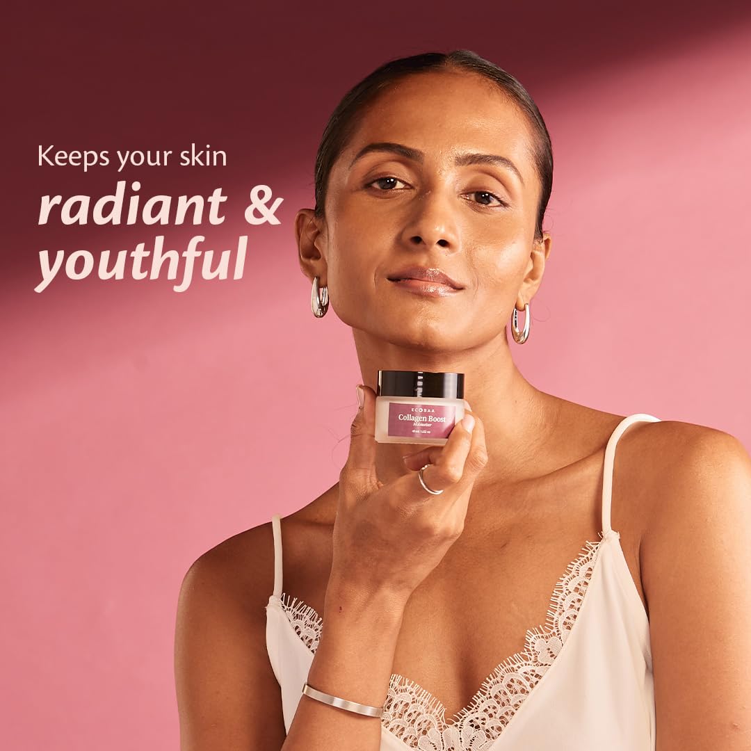 Vitamin C Moisturizer for Radiant Skin Repair: Ecosaa Collagen Cream Moisturizer with Vitamin C promotes collagen production, helps even out skin tone and reduce dark spots. Thus, promoting a radiant youthful glow by improving skin texture.