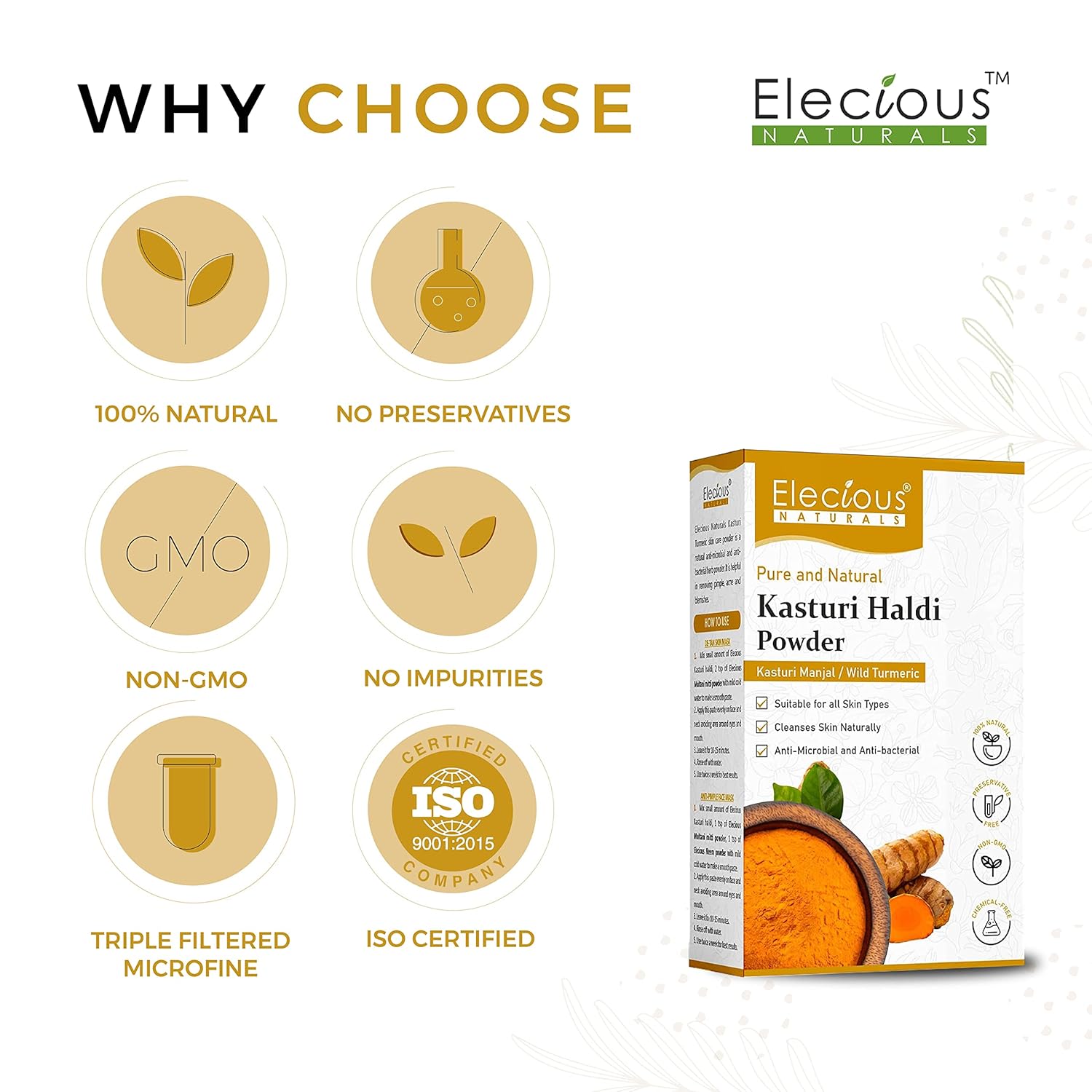 ✅ NO CHEMICAL, NO PRESERVATIVE: Elecious Kasturi Haldi powder is free from any preservative or pesticide, hence it is suitable for all skin types