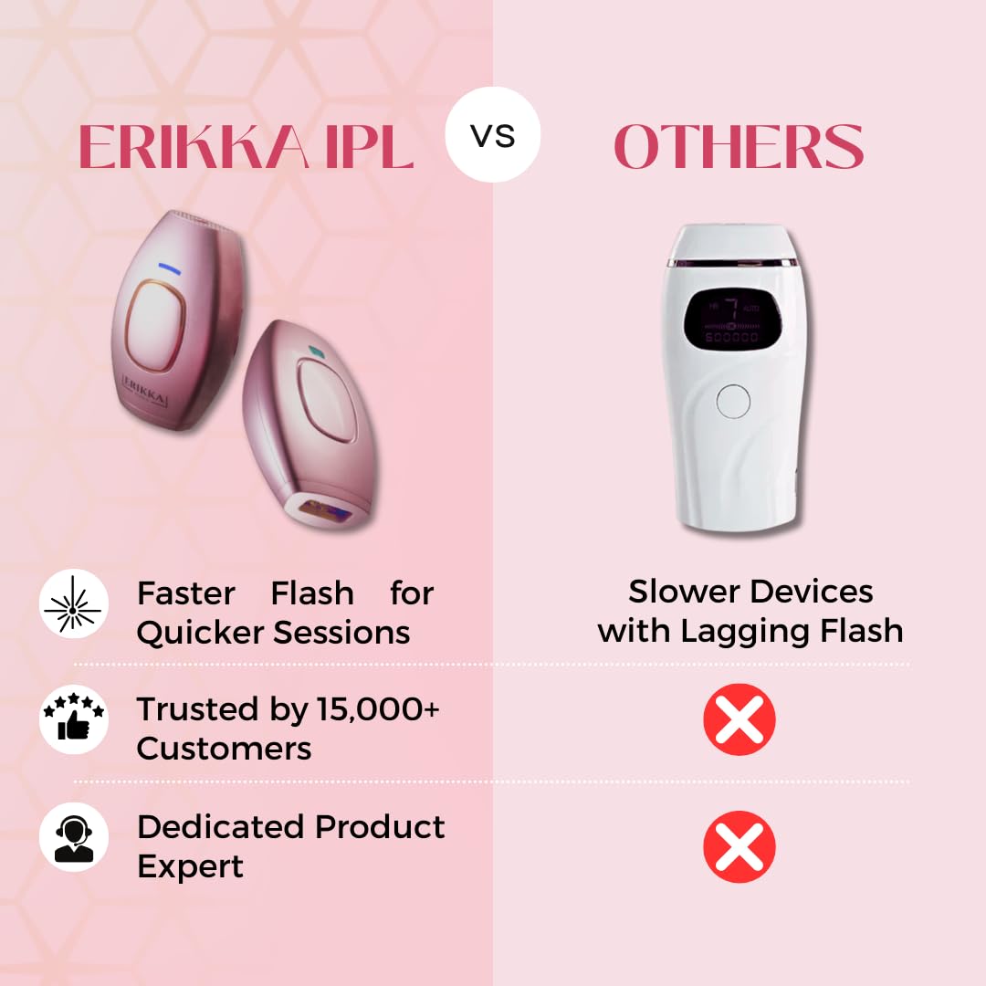 DUAL FLASH MODE & EASY TO USE, Erikka IPL Handset Has Two Modes: Automatic Long Press Mode And Manual Mode Which Makes It Easier To Use For Longer Time.