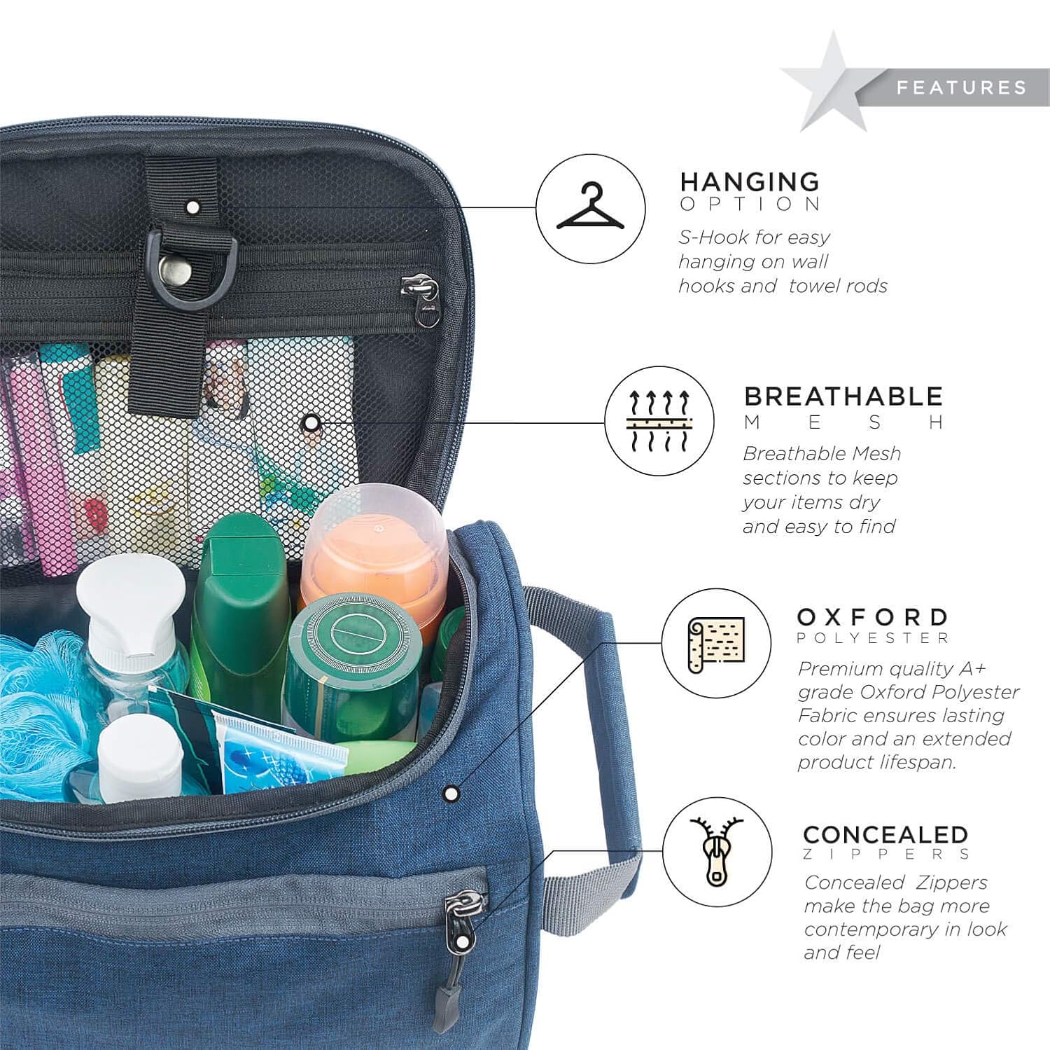 Can be used as a toiletry carry kit, cosmetics case and makeup pouch