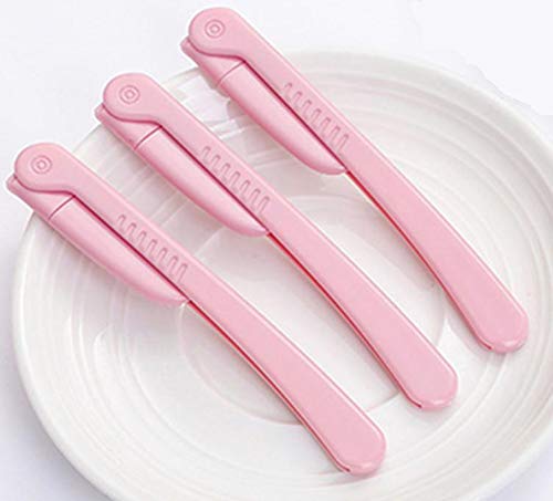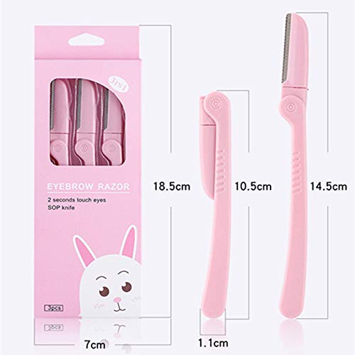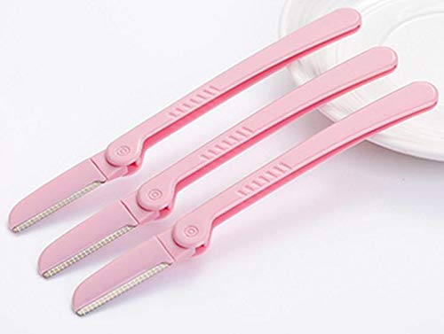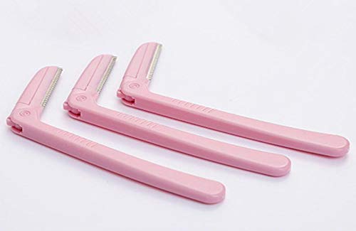 3Pcs/Set Pink Facial Eyebrow Trimmer Armpit Hair Razor Beauty Face Eye brow Shaper Shaver Stainless Steel Blades Makeup Tools (Pink)