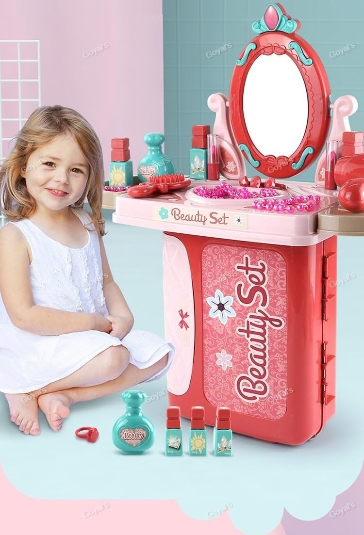 IDEAL BEAUTY SET FOR GIRLS :- Pretend cosmetic vanity set are made from environmental friendly material, Safety tested,Non toxic. Perfectly size for little hands can develop their fine motor skills.