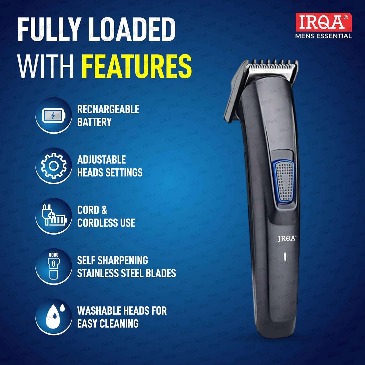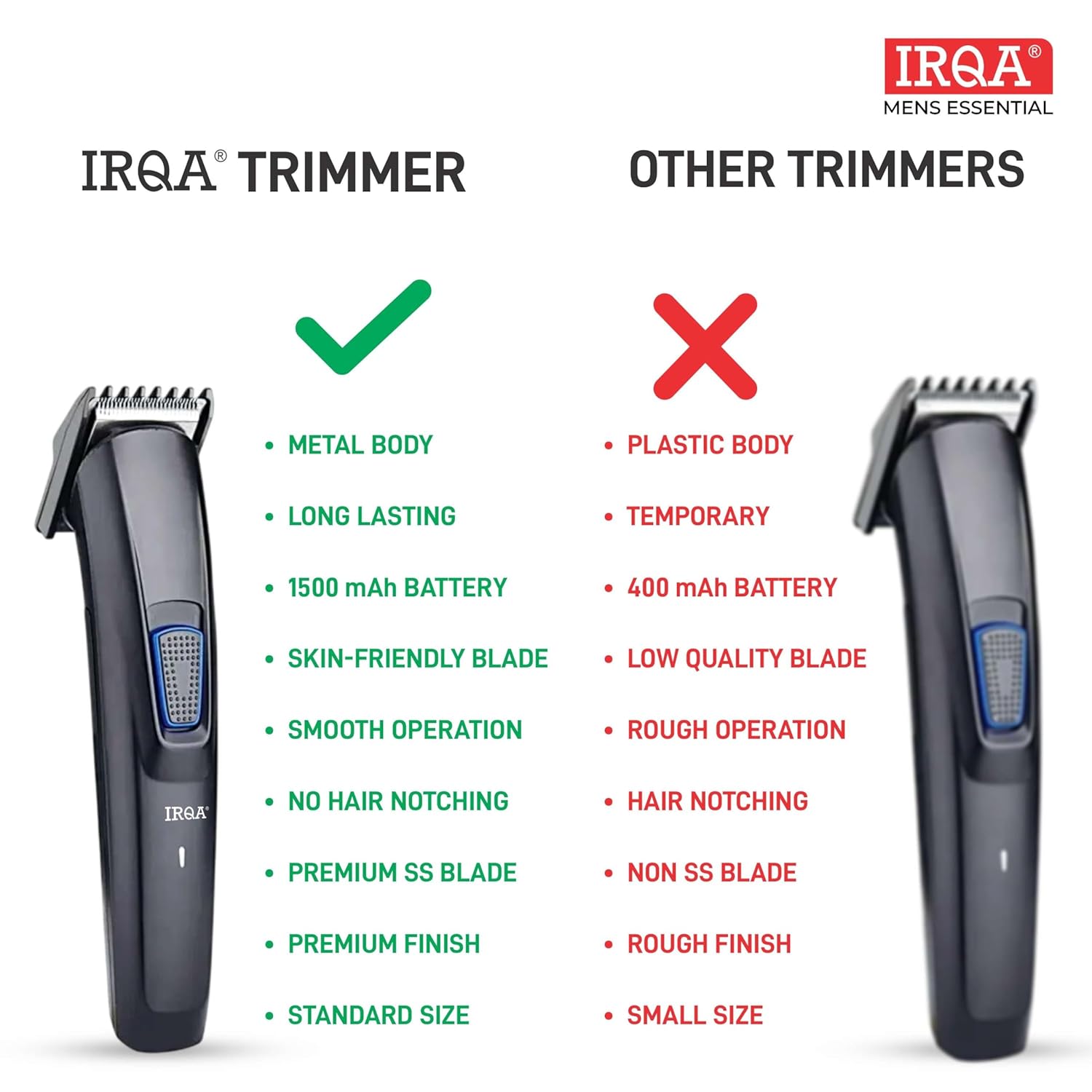 ✅LONG LIFE MOTOR: Equipped with a durable motor, the IRQA trimmer ensures consistent performance and longevity, making it a reliable tool for regular use AND CORDLESS CONVENIENCE: Experience the freedom of movement with the IRQA trimmer’s cordless design, allowing for easy maneuverability and flexibility during grooming sessions