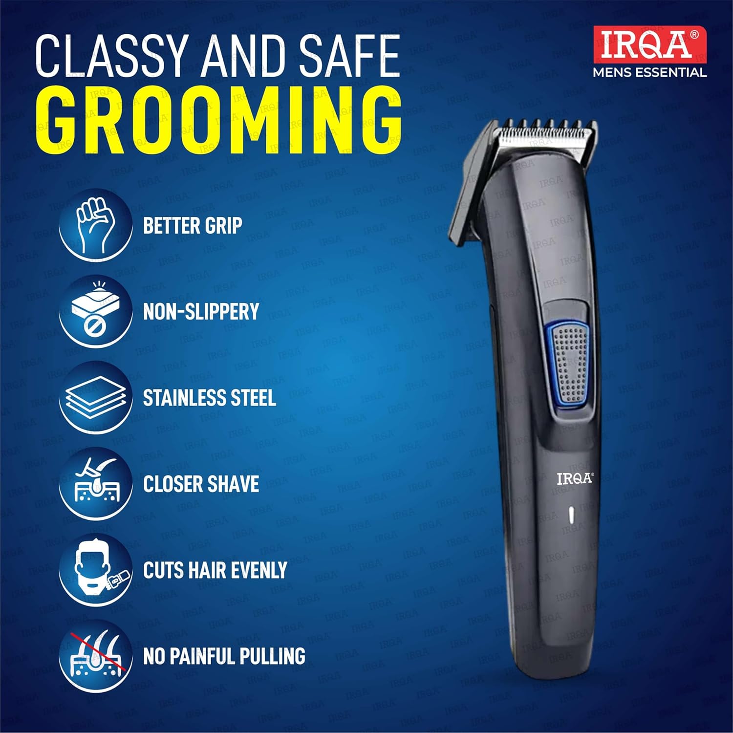 IRQA professional hair trimmers use high-quality stainless steel cutter head with R-shaped design, easily cuts off different hair and does not hurt the skin during operation.