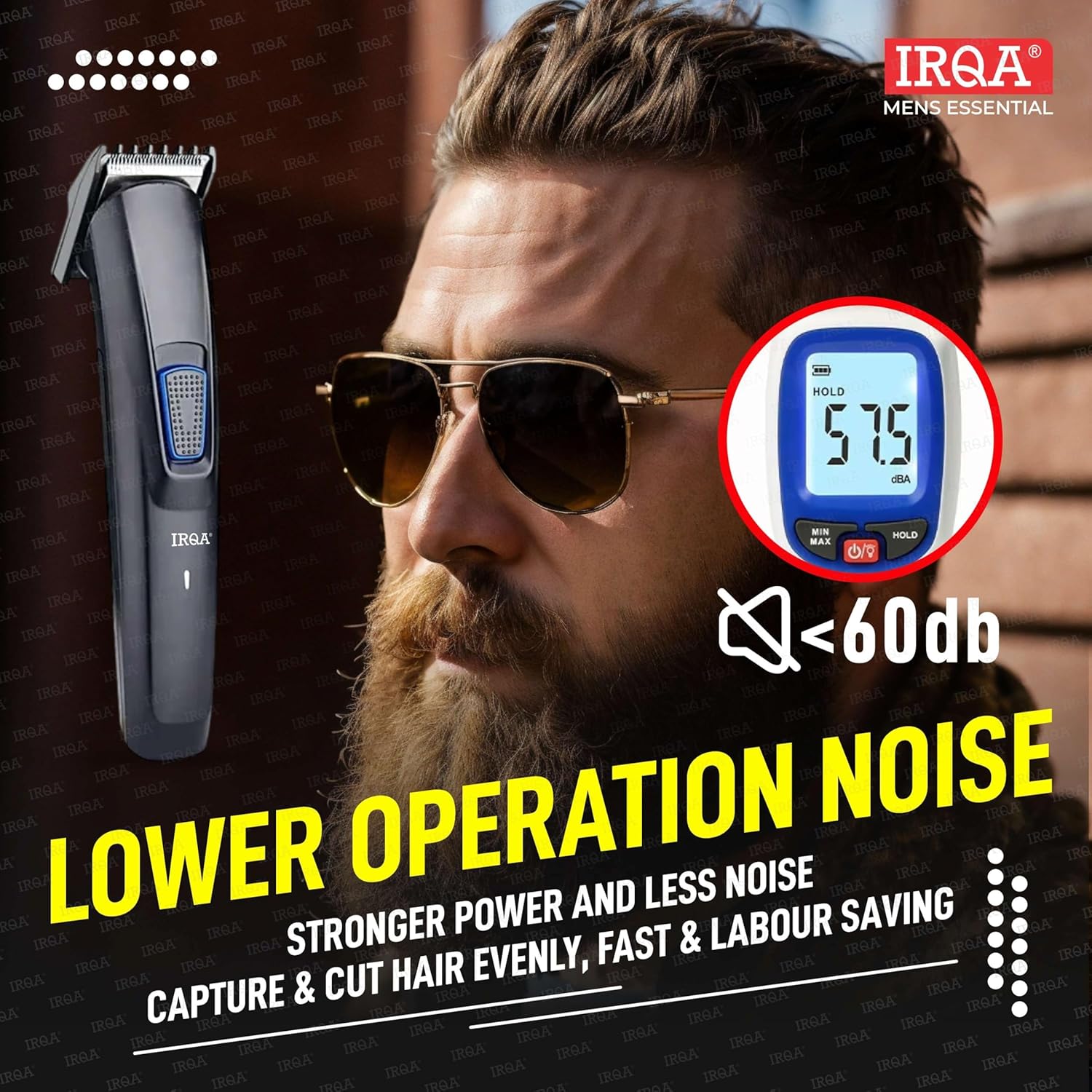 ✅HEAVY DUTY MOTOR & SELF-SHARPENING BLADES – IRQA men’s trimmer electric cordless hair clippers and trimmer for men are constructed of all metal body for a luxurious look, feel and grip; its heavy-duty motor ensures less noise below 60 dB, and the self-sharpening stainless steel blades can offer an effective haircut with no snagging or pulling.