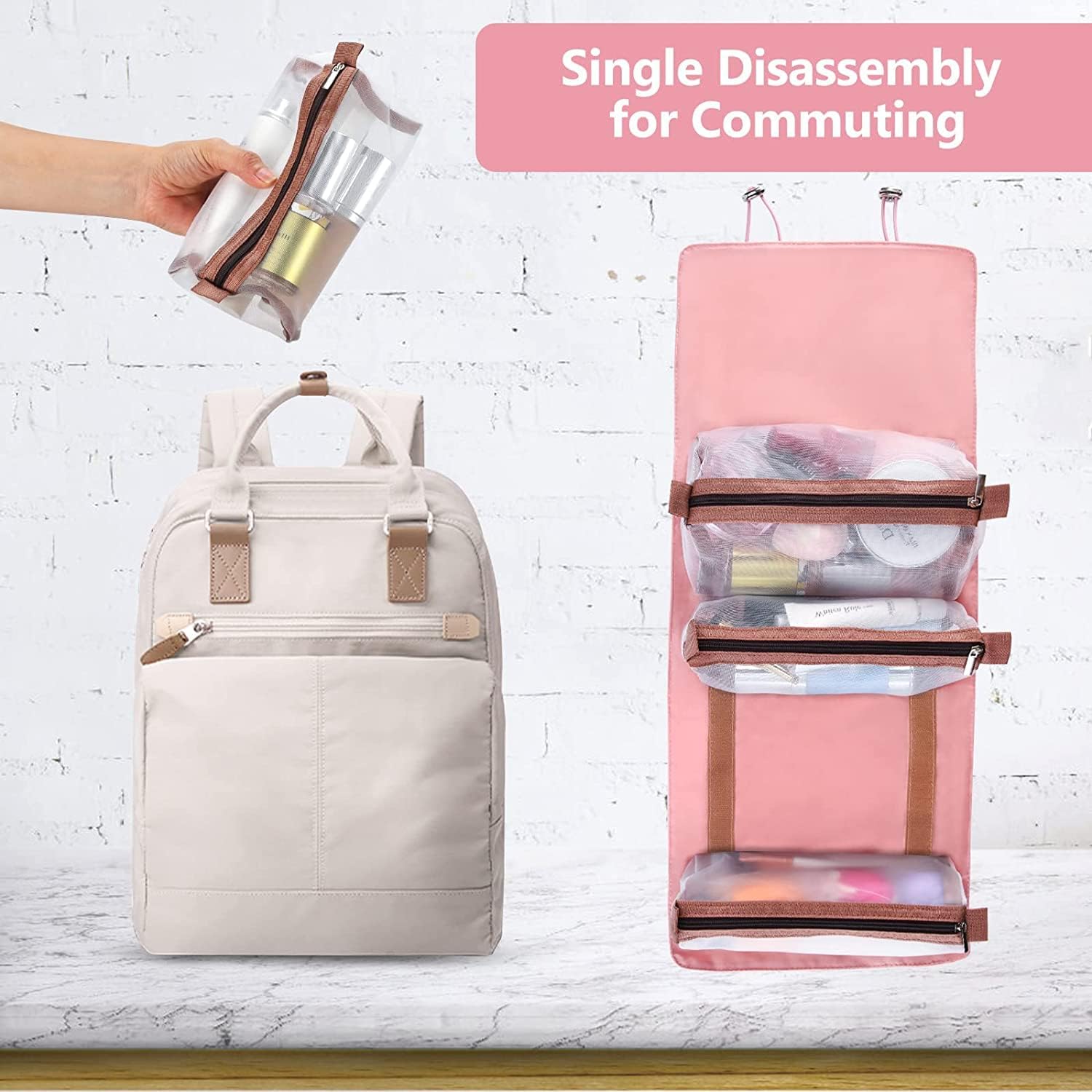 SPACE SAVING:Allows to hang the toiletry kit from towel rack, coat hook or wherever is available, making your toiletries and cosmetics displayed well for easy access and save space as well.