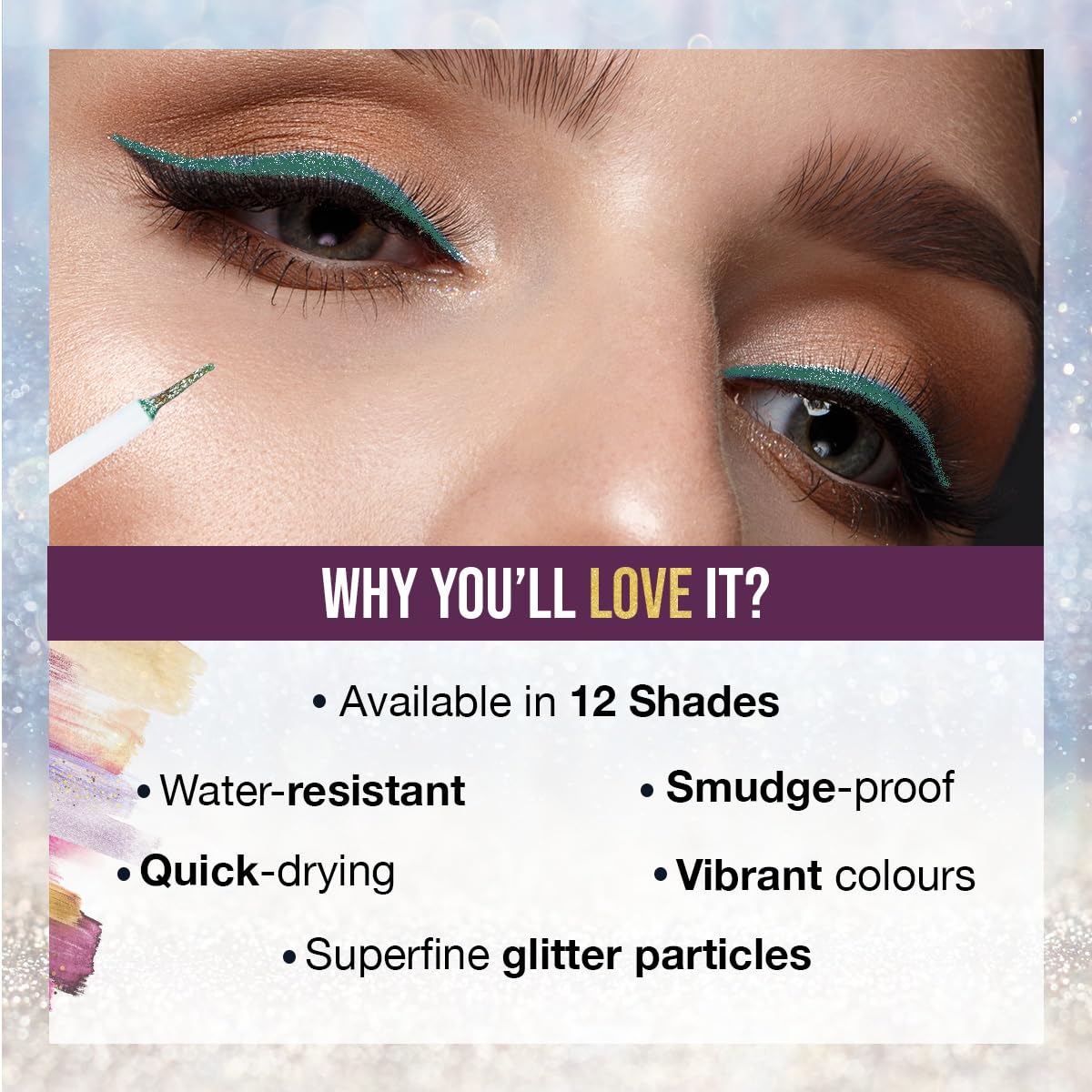 Water-Resistant Formula: Our Glitter Eyeliner is your secret weapon for eyes that sparkle with enchantment all day and night. Our eyeliner’s water-resistant formula ensures your look stays flawless, without any smudges or runny makeup.