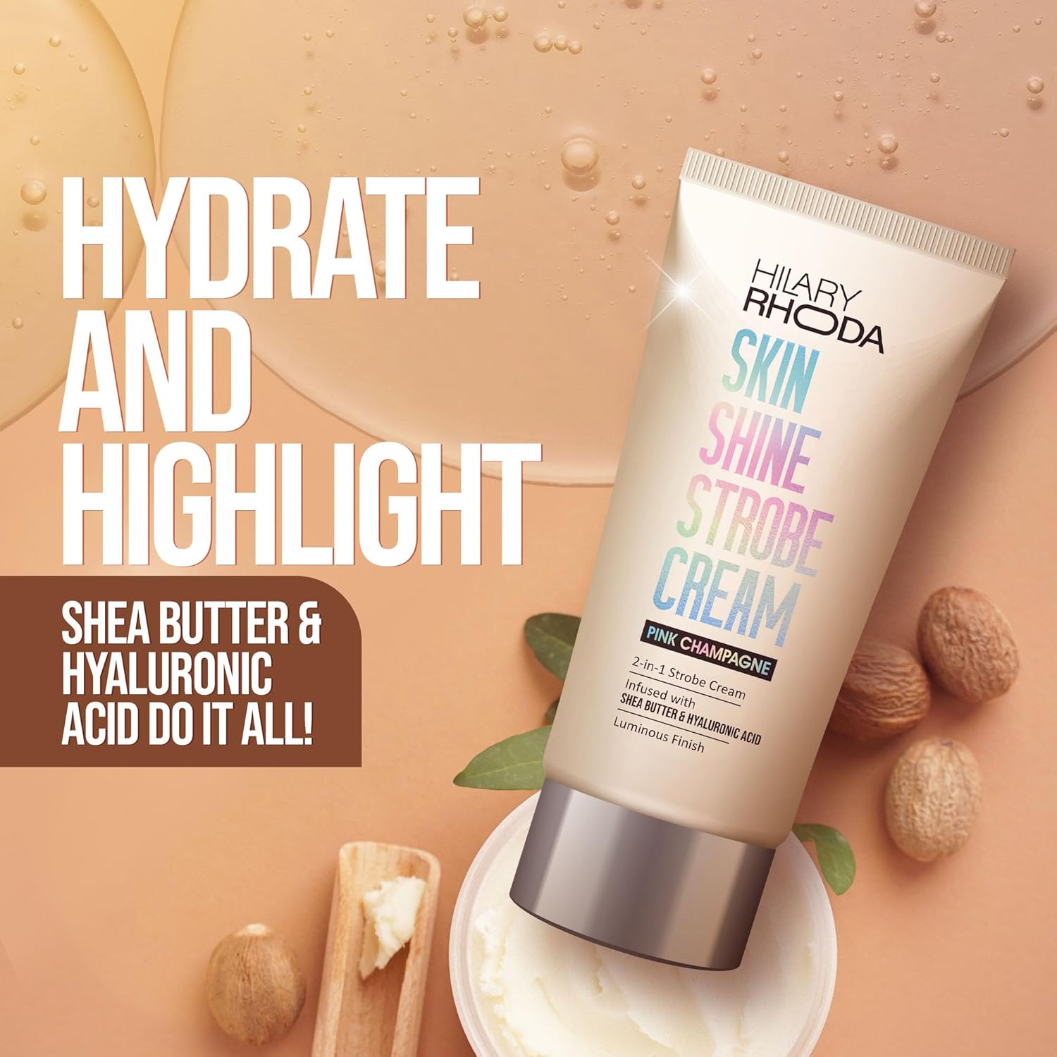 Infused with Shea Butter and Hyaluronic Acid: Experience deep hydration with Hilary Rhoda’s Skin Shine Strobe Cream, as its blend leaves your skin feeling plump and nourished, perfect for that ‘dewy glow’. Shea butter and hyaluronic acid in Hilary Rhoda’s Skin Shine Strobe Cream work together to lock in moisture, giving you a radiant, healthy-looking complexion.