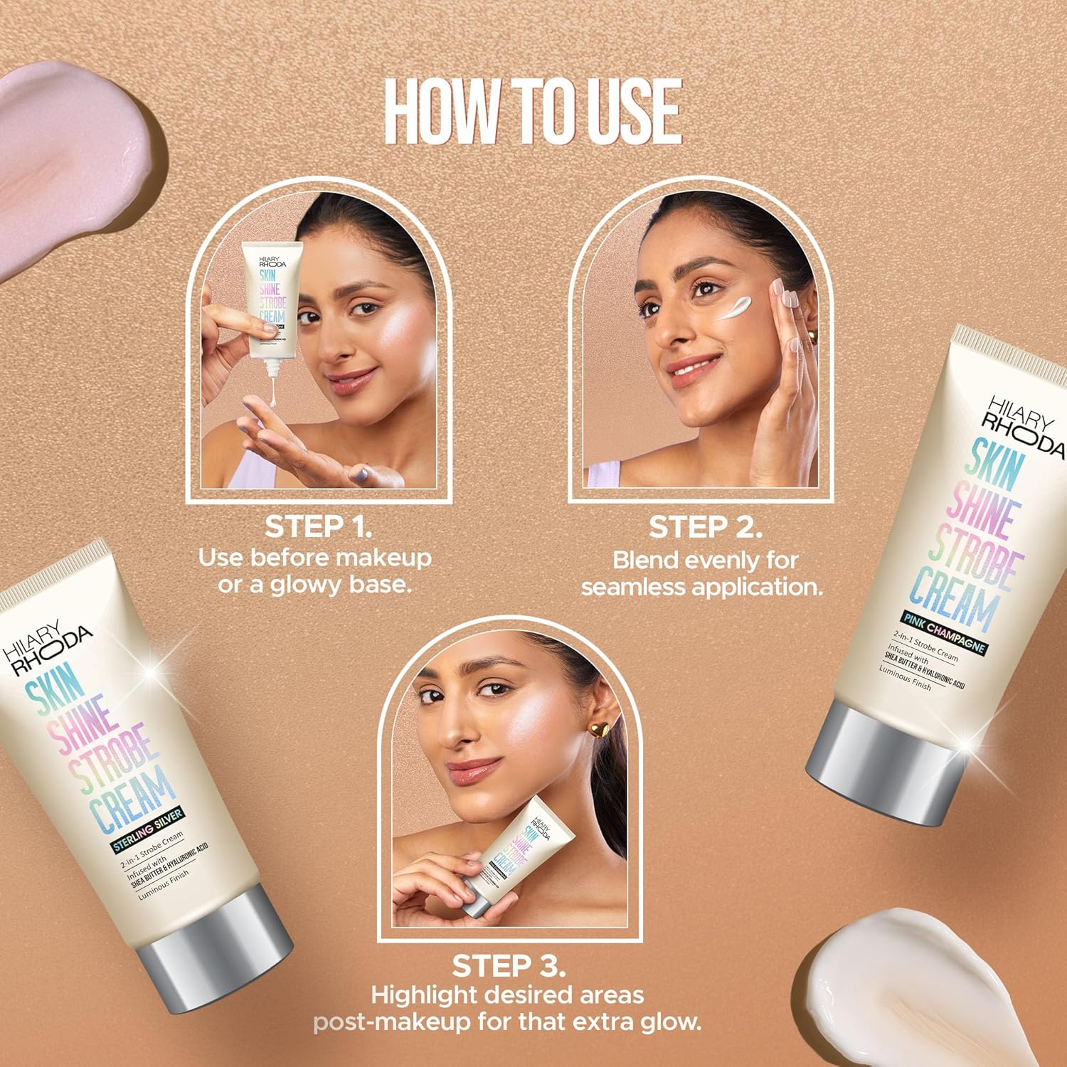 Long-Lasting Formula: Maintain a luminous, healthy glow throughout the day, boosting your confidence with a radiant complexion using Hilary Rhoda’s Skin Shine Strobe Cream. The formula of Hilary Rhoda’s Skin Shine Strobe Cream ensures your skin looks radiant and refreshed, providing a lasting, beautiful glow.