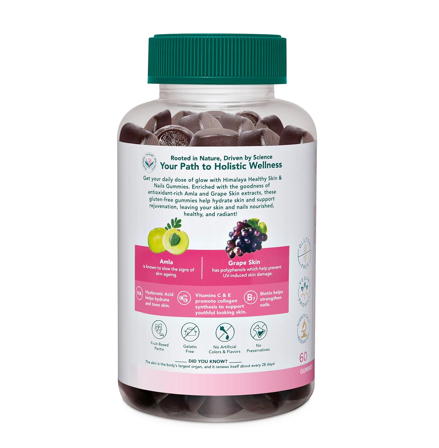 Himalaya Skin & Nail Health Gummies | For Healthy, Glowing, Youthful Skin & Nails | Gelatin-free Fruit based Gummies | Contains Hyaluronic acid, Biotin, Amla, Grape skin & 5 essential Vitamins| 100% Vegetarian | Pack of 60