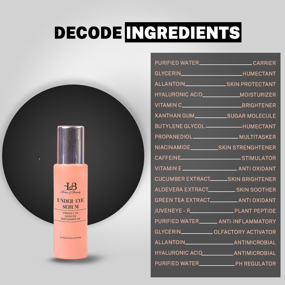 Caffeine: Age-old caffeine which helps in microcirculation. Great for reduction of puffy eyes