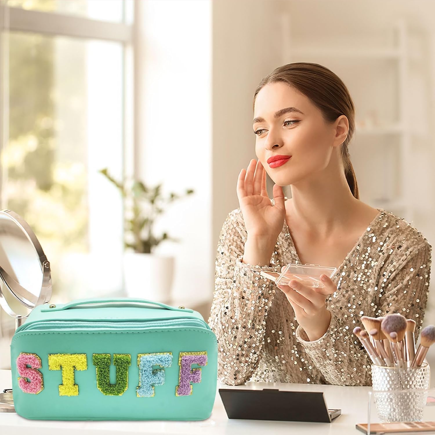 MULTIFUNCTIONAL STORAGE Lightweight and water-resistant external with anti-wear and anti-scratch interior, portable design suitable for traveling or using it as an everyday, soft material make you able to put it in your suitcase or backpack easily. Not only is it a great Chenille Letter bag, but it’s also a great toiletry bag or travel bag for men and women.