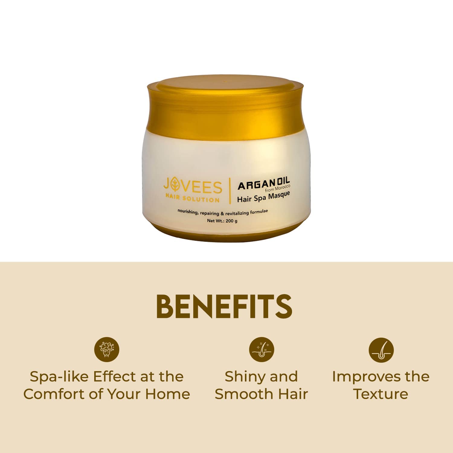 Deep Nourishment and Repair: Jovees Moroccan Argan Oil Hair Spa Masque deeply nourishes and repairs dry, damaged hair, restoring moisture and vitality from within.
