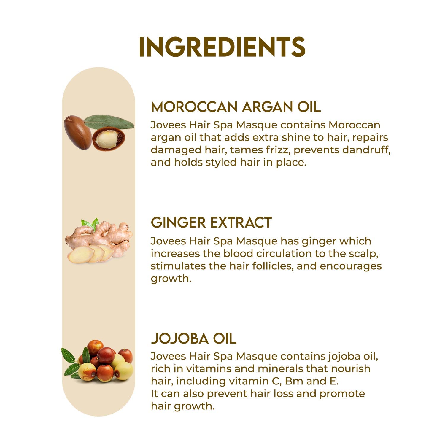 Jovees Argan oil from Moroccan Hair Spa Masque is enriched with a high concentration of natural ingredients, a unique formulae that helps to treat hair by nourishing, repairing, revitalizing and regenerating to make them strong, rejuvenated and healthy.