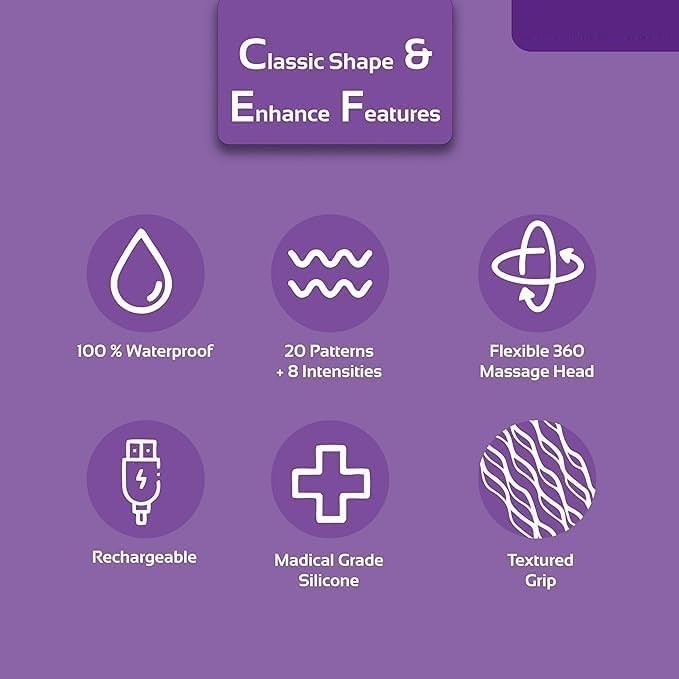 Rechargeable Personal Body Cordless Massager is Water Resistant, Compact, and Quiet and Soft bendable silicone head. It is economical massager get professional grade massaging at-home.