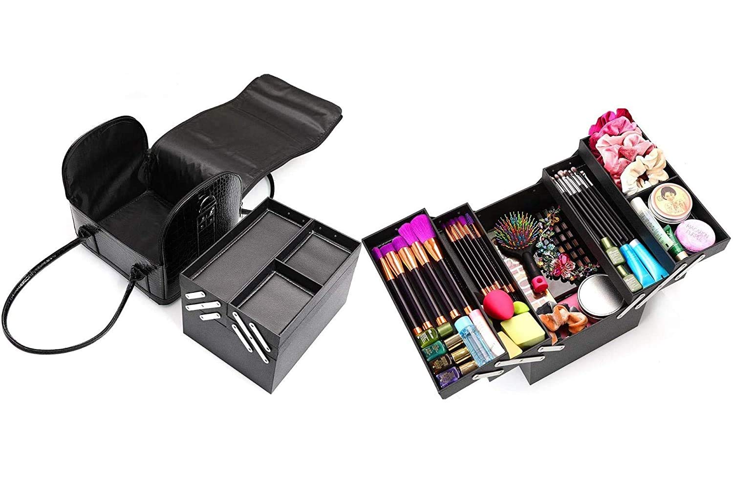 This Cosmetic Train Case and Jewelry Storage Box from is the perfect cosmetic organizing solution for your beauty products and/or jewelry items.The tiered beauty organizer features to store items securely.A wide and open top provides full access to the inner items.As a multi-functional jewelry box, this jewelry box suits for necklaces, bracelets, watches, earrings, ear studs, hairpins, cuff links, brooches and other jewelries, specially design for office ladies.